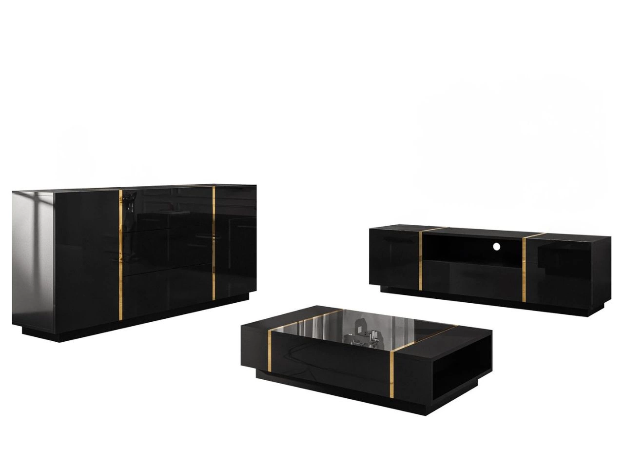 Wohnzimmer-Set im Glamour-Stil Lunelie Schwarz Hochglanz