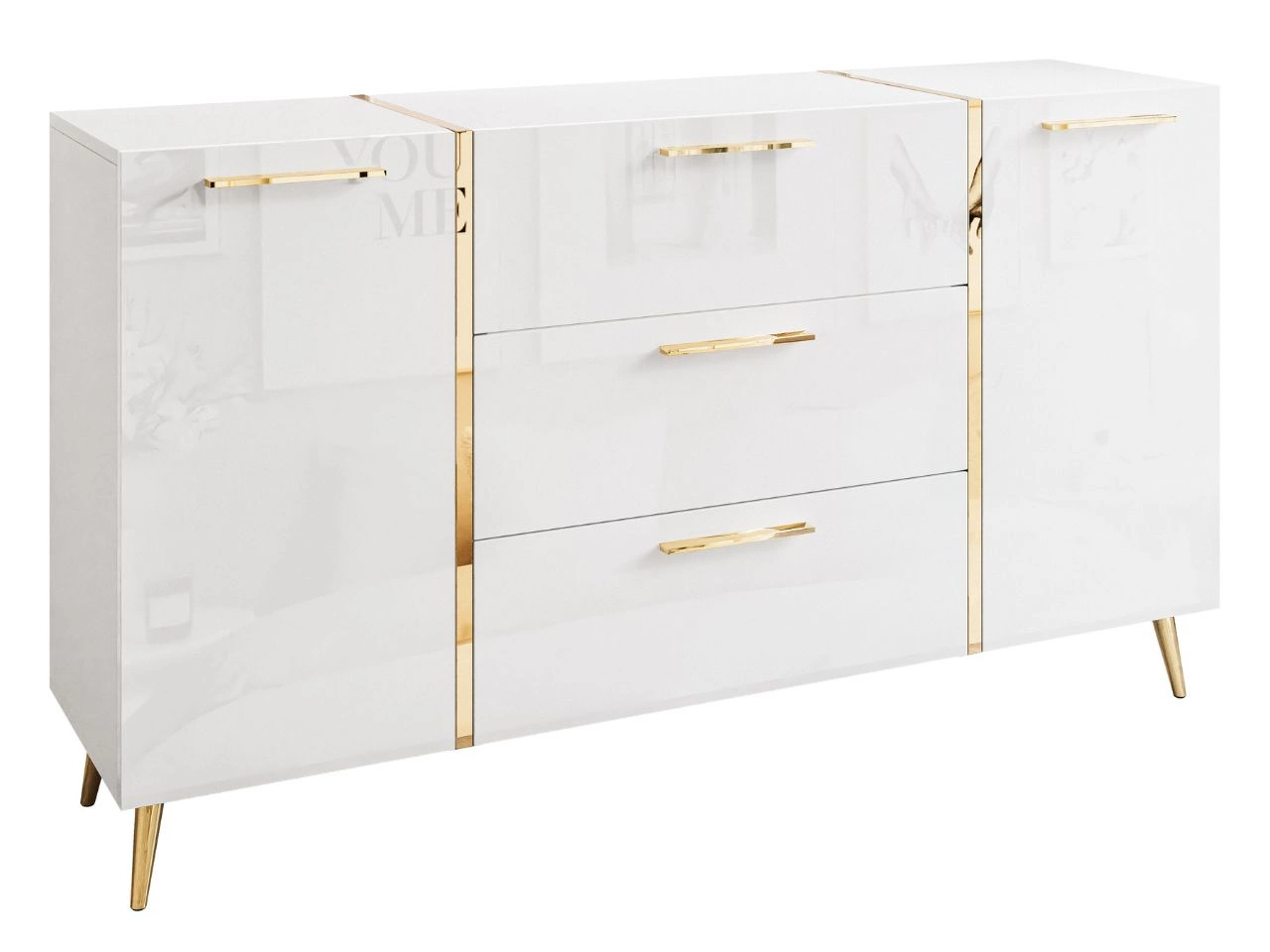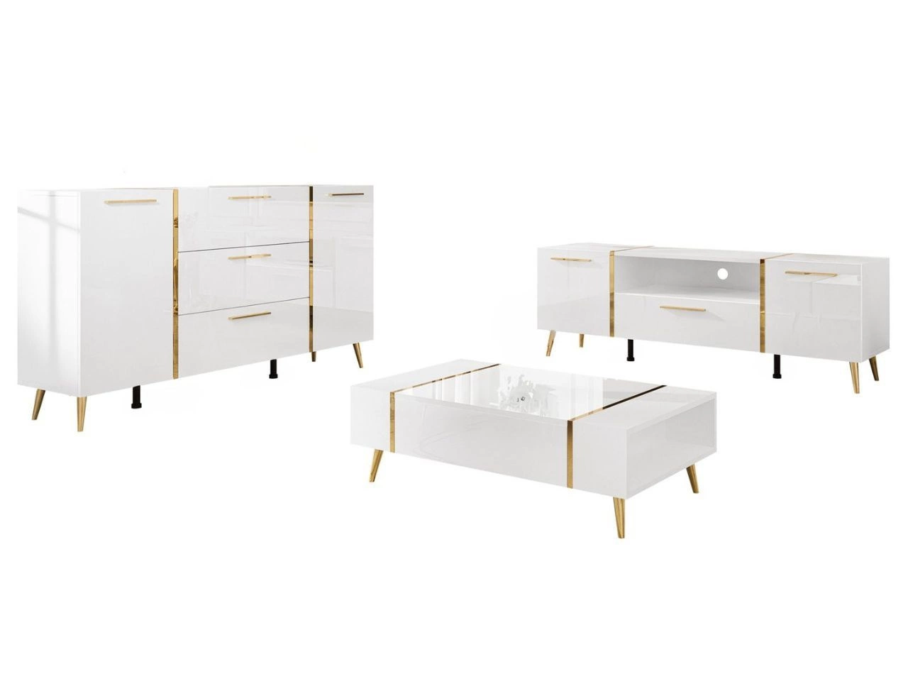 Wohnzimmer-Set mit goldenen Metallbeinen und goldenen Griffen Lunelie Weiß Hochglanz