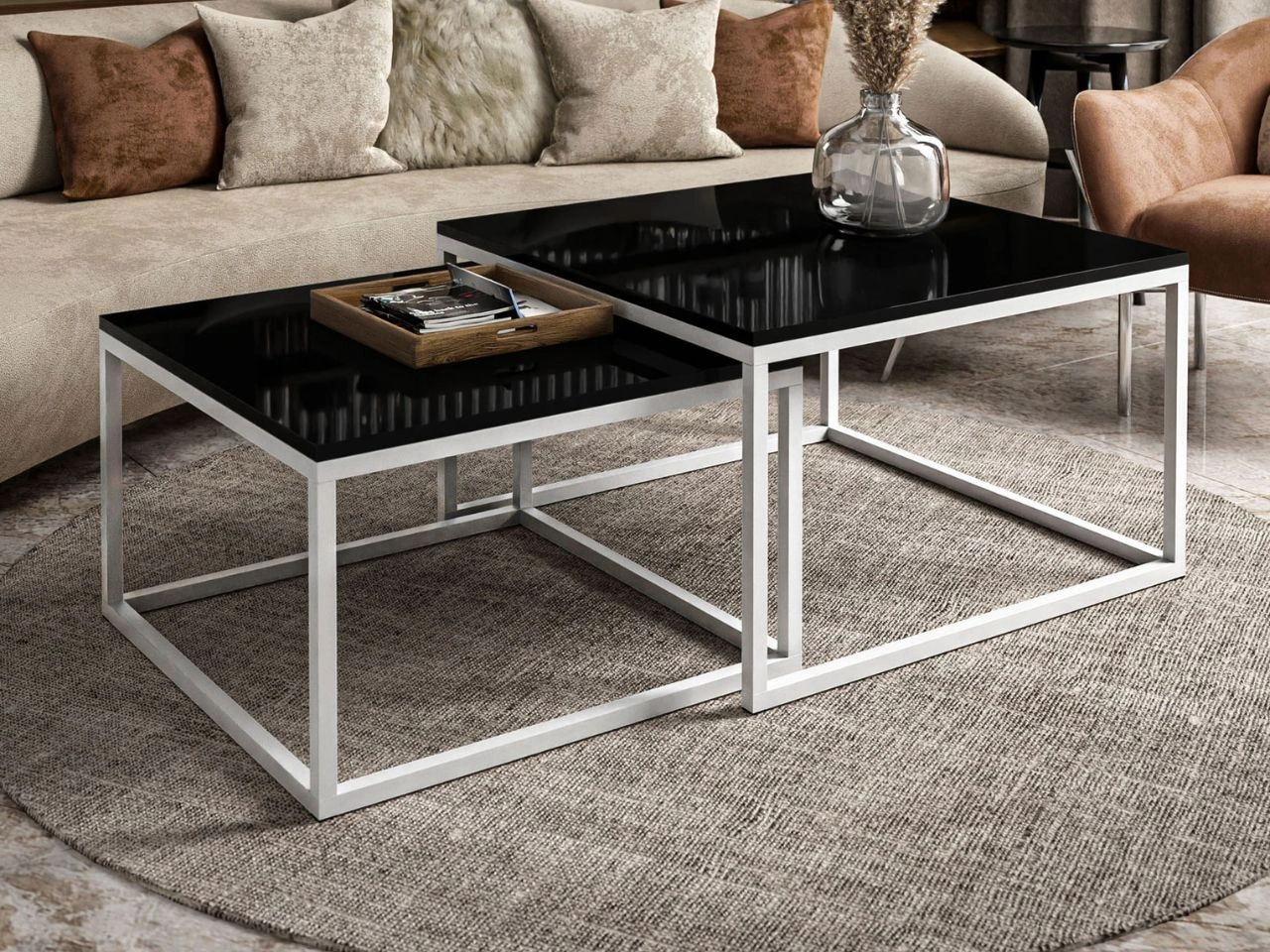 Unterschiedlichen Tischgrößen ermöglichen es, den kleineren Tisch einfach unter den größeren zu schieben, wodurch das Set nicht nur elegant, sondern auch äußerst praktisch ist. Diese Lösung eignet sich ideal für großzügige Wohnräume ebenso wie für kompaktere Zimmer, in denen Funktionalität, Ästhetik und Liebe zum Detail gefragt sind.