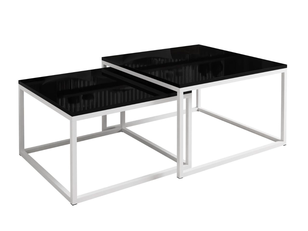 Couchtisch auf weißem Gestell Asumi Schwarz Hochglanz 40x46