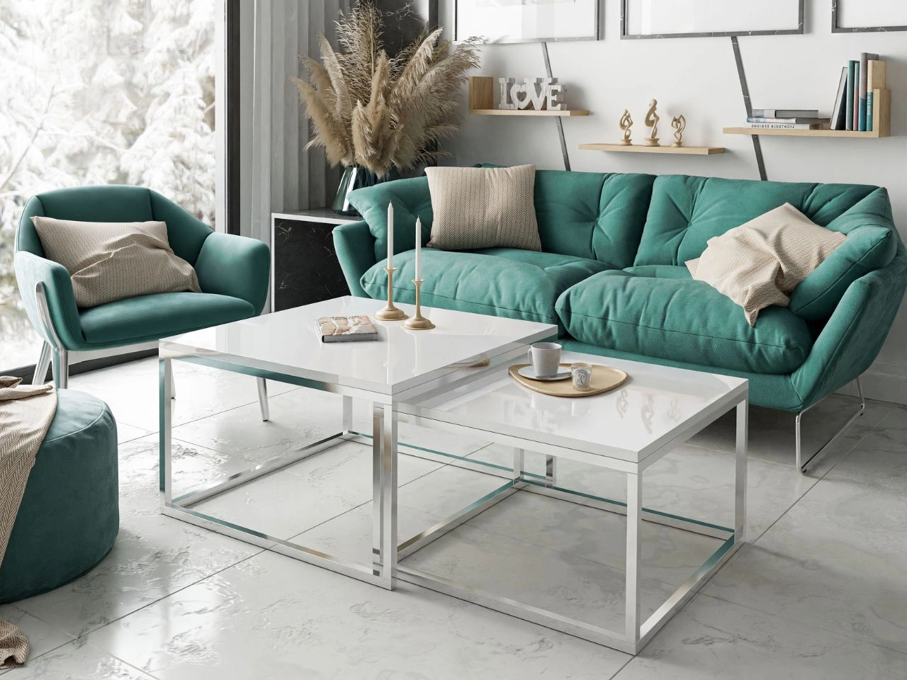 Dank der unterschiedlichen Tischhöhen lässt sich der kleinere Tisch unter den größeren schieben – so ist das Set nicht nur optisch ansprechend, sondern auch äußerst praktisch. Eine ideale Lösung für geräumige Wohnzimmer ebenso wie für kleinere Räume, in denen Funktionalität, Ästhetik und Liebe zum Detail zählen.