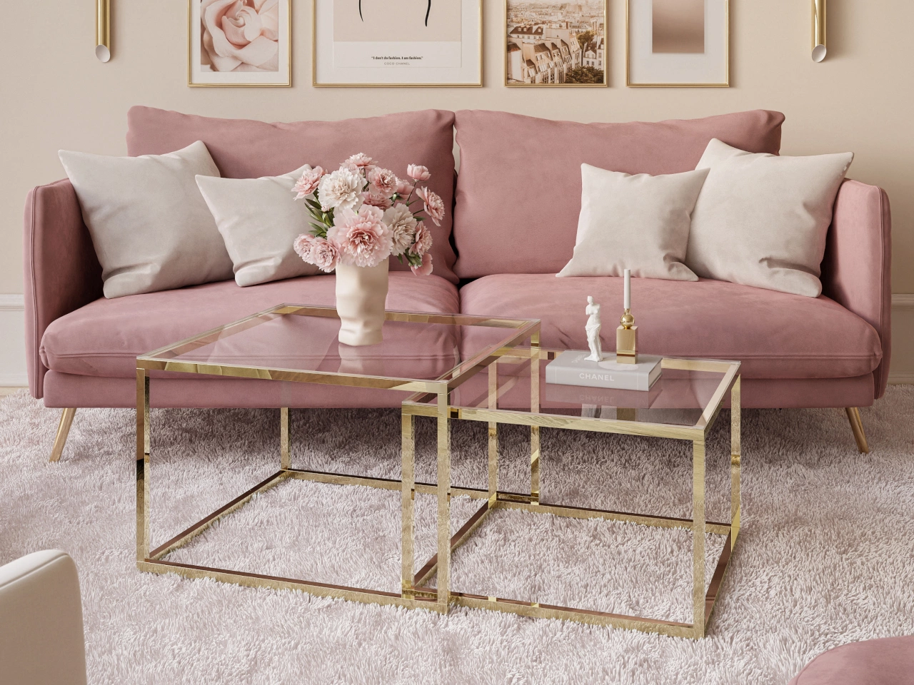 Die transparente Tischplatte aus 4 mm starkem gehärtetem Glas verleiht dem Tisch Eleganz und optische Leichtigkeit und fügt sich perfekt in moderne Wohnräume ein. Ihre Oberfläche reflektiert das Licht dezent und sorgt so für eine hellere, offenere Raumwirkung. Das goldfarbene, verchromte Metallgestell rundet das Design wirkungsvoll ab – es verleiht dem Möbelstück einen Hauch von Luxus und besonderen Glanz, während es gleichzeitig Stabilität und Langlebigkeit garantiert.