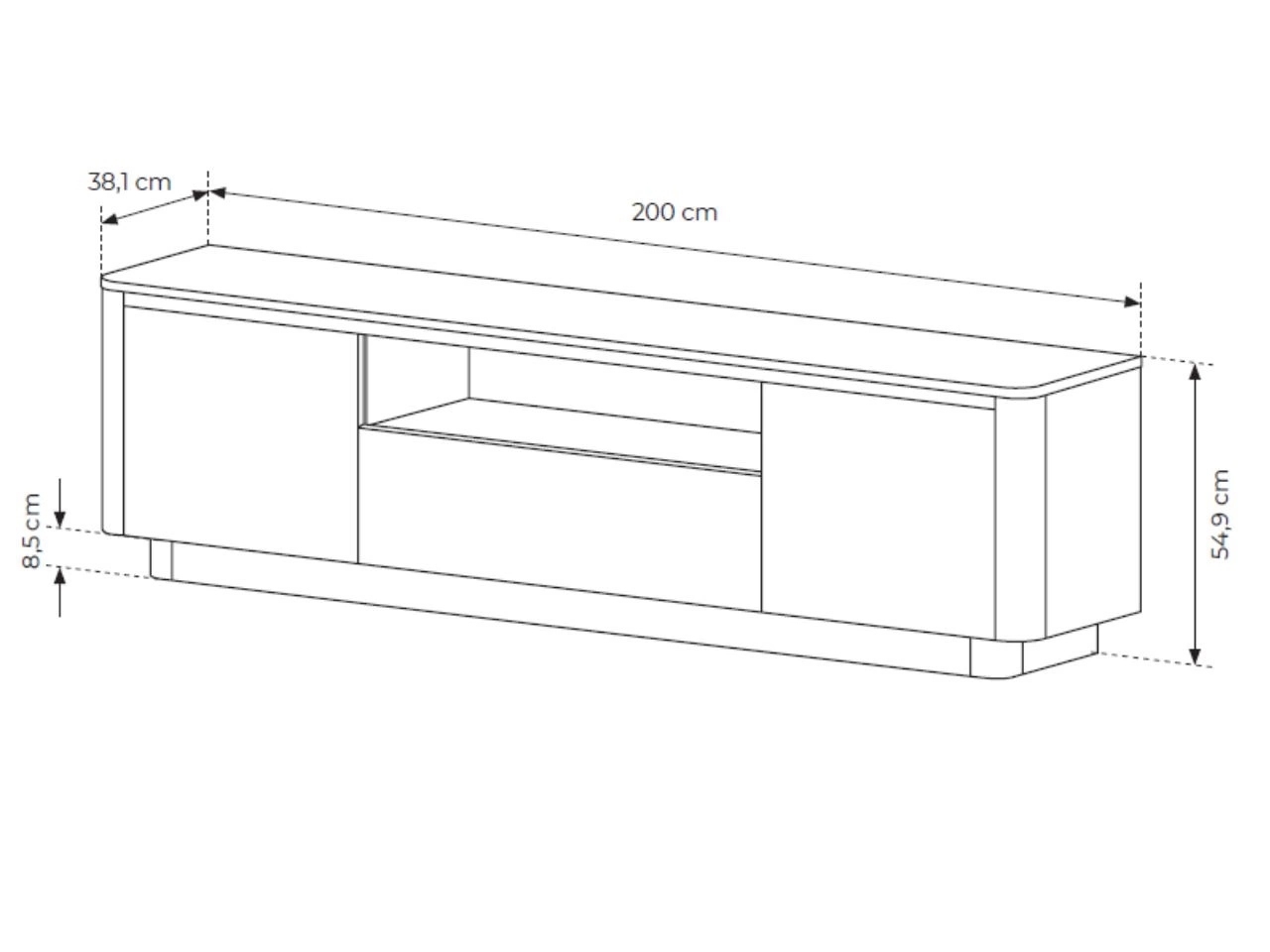Das TV-Board Fascino verfügt über ein modernes, griffloses Push-to-Open-System – ein leichter Druck genügt, um die Türen zu öffnen. Ein weiteres Designmerkmal sind die abgerundeten Ecken, die an den Retro-Stil erinnern und dem Möbel eine besondere Eleganz verleihen. Um die Oberfläche dauerhaft zu schützen, sind alle Kanten mit einem ABS-Umleimer versehen, der vor Kratzern, Stößen und Feuchtigkeit schützt.