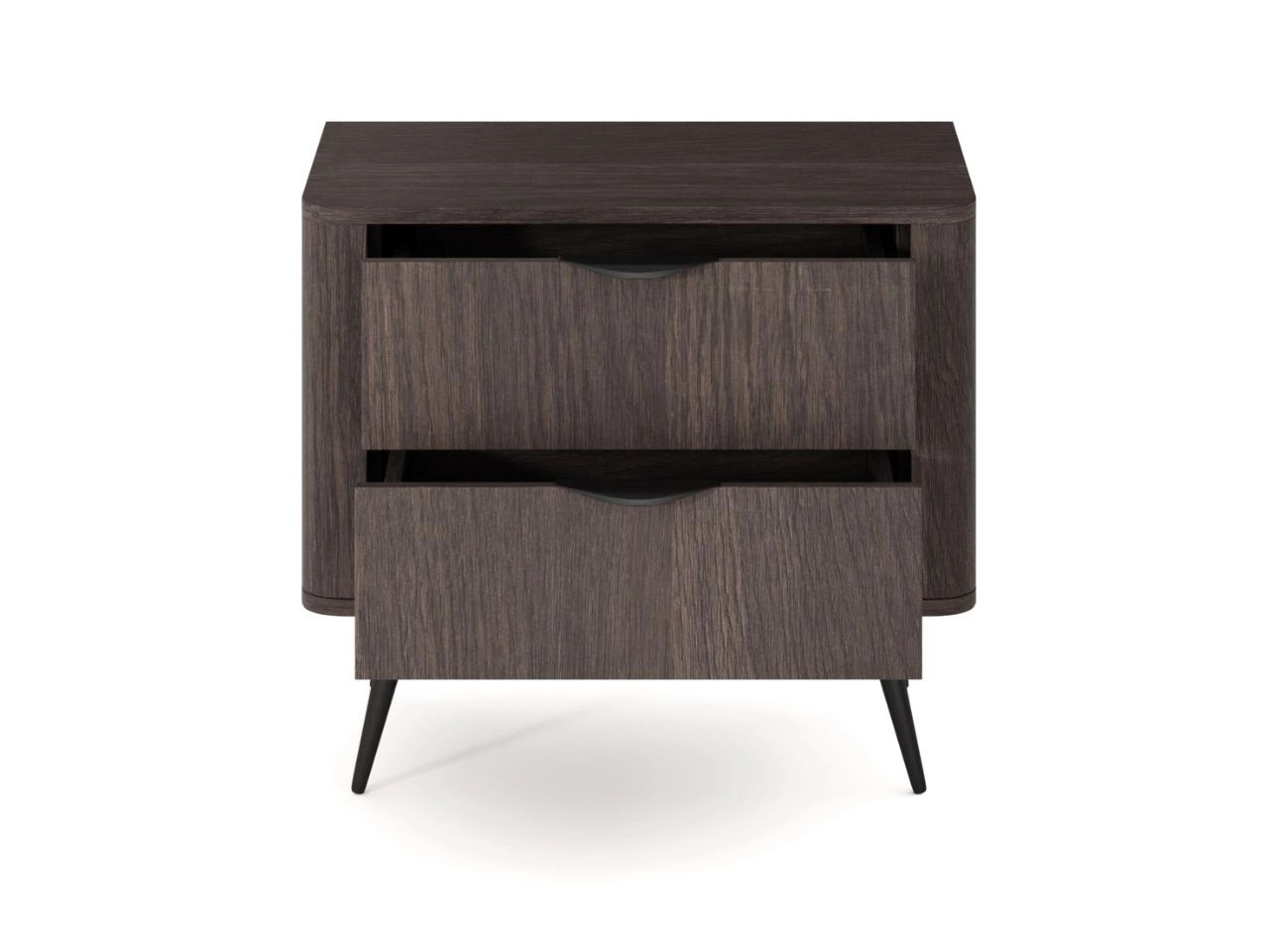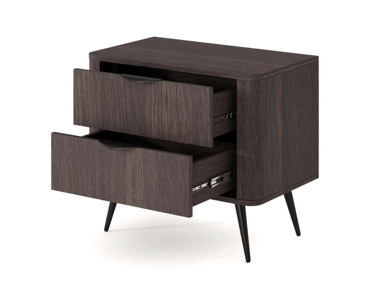 Der Nachttisch ist mit zwei geräumigen Schubladen ausgestattet, die ideal zur Aufbewahrung alltäglicher Gegenstände, Dokumente oder Textilien geeignet sind. Die Schubladen laufen auf Kugelführungen mit Vollauszug, was einen sanften, stabilen Lauf und hohen Bedienkomfort gewährleistet.