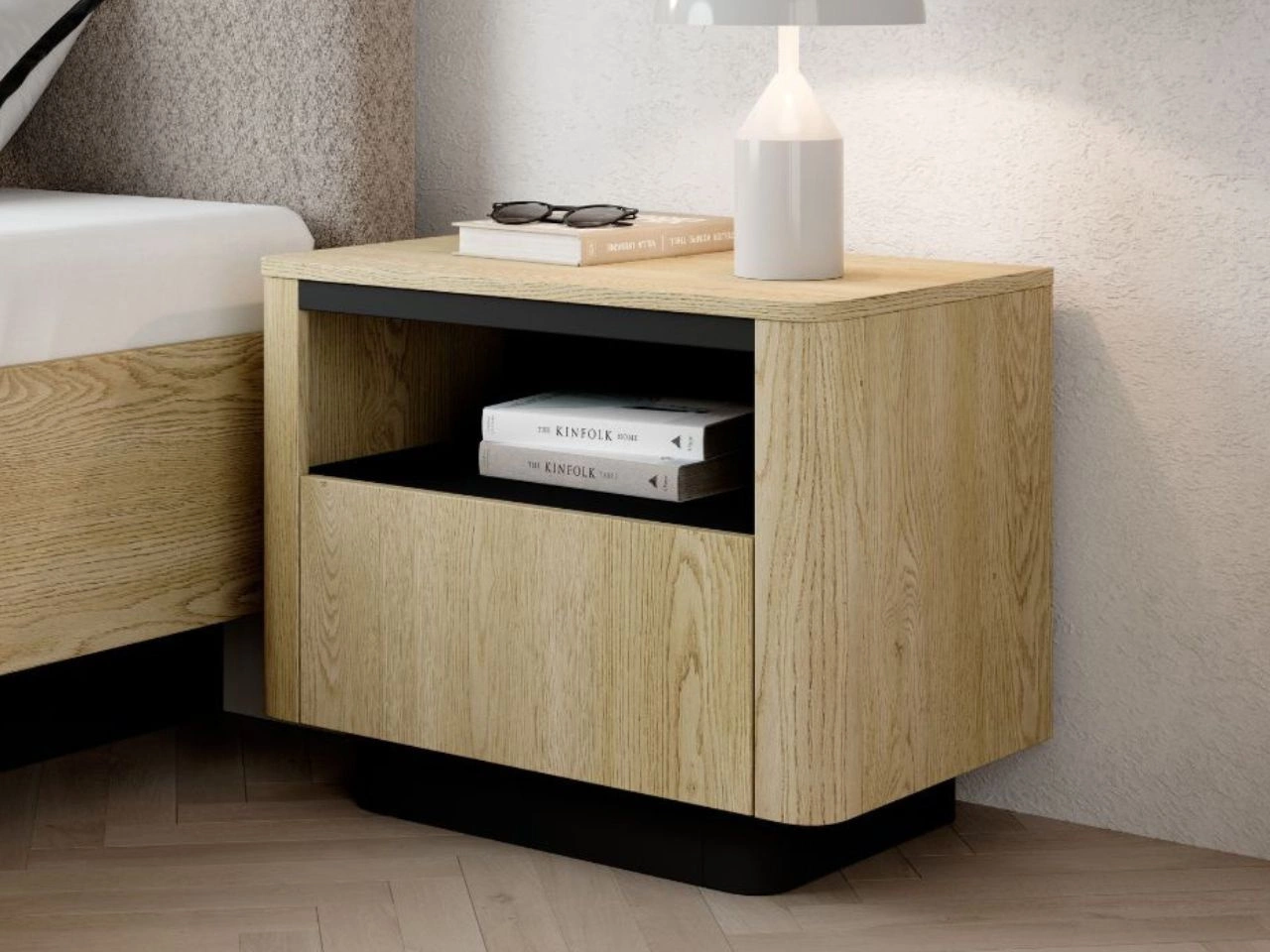Nachttisch mit Schublade Fascino Eiche Cremona, Schwarz