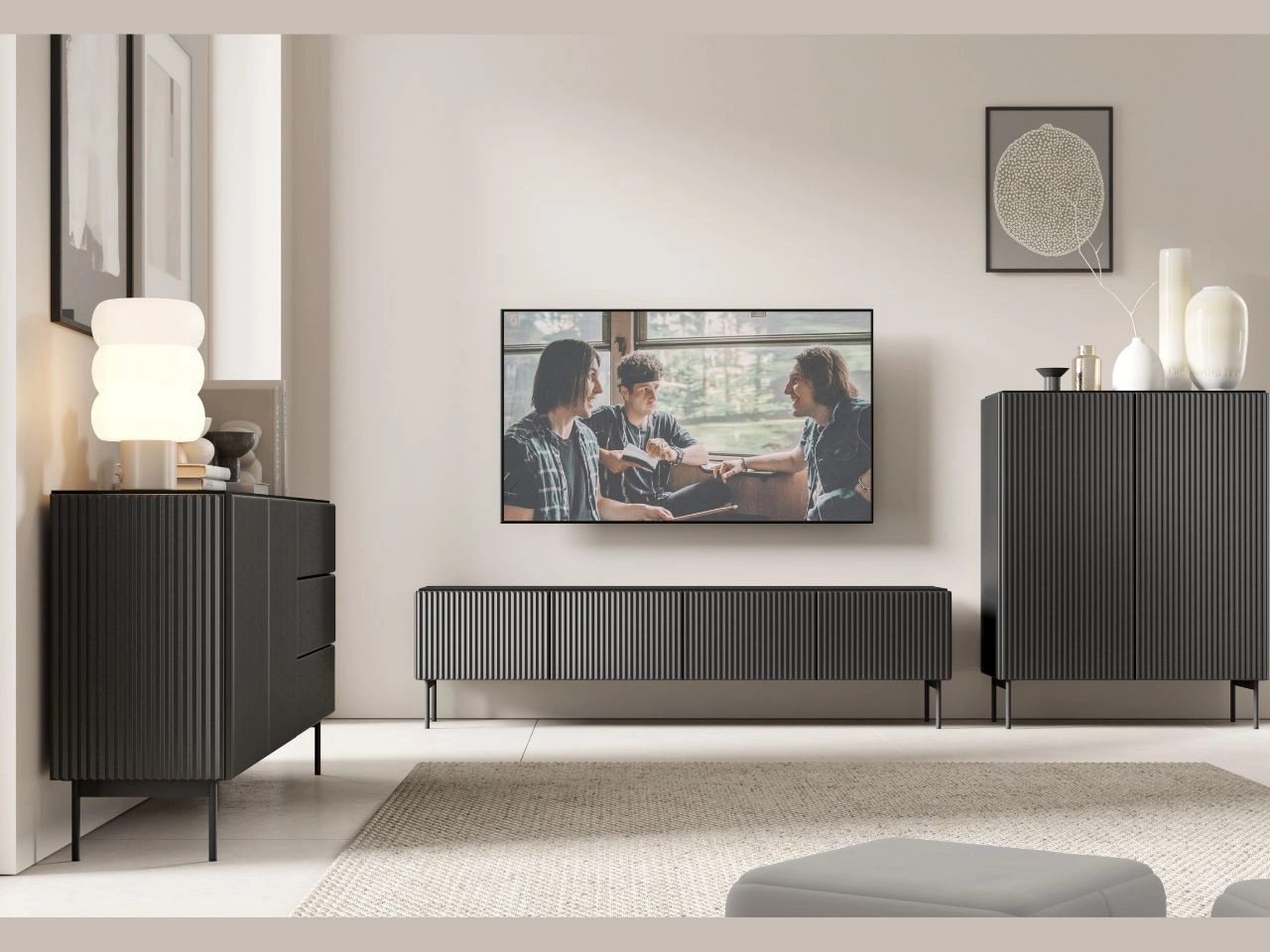 Kollektion Qualita steht für moderne Möbel mit einem klaren, minimalistischen Charakter. Geriffelte MDF-Fronten, eine schlichte Formensprache und Metallbeine verleihen den Modulen einen ausdrucksstarken, zeitgemäßen Stil. Das einheitliche Design und das praktische Push-to-Open-System schaffen eine funktionale und ästhetische Lösung für moderne Wohnbereiche.