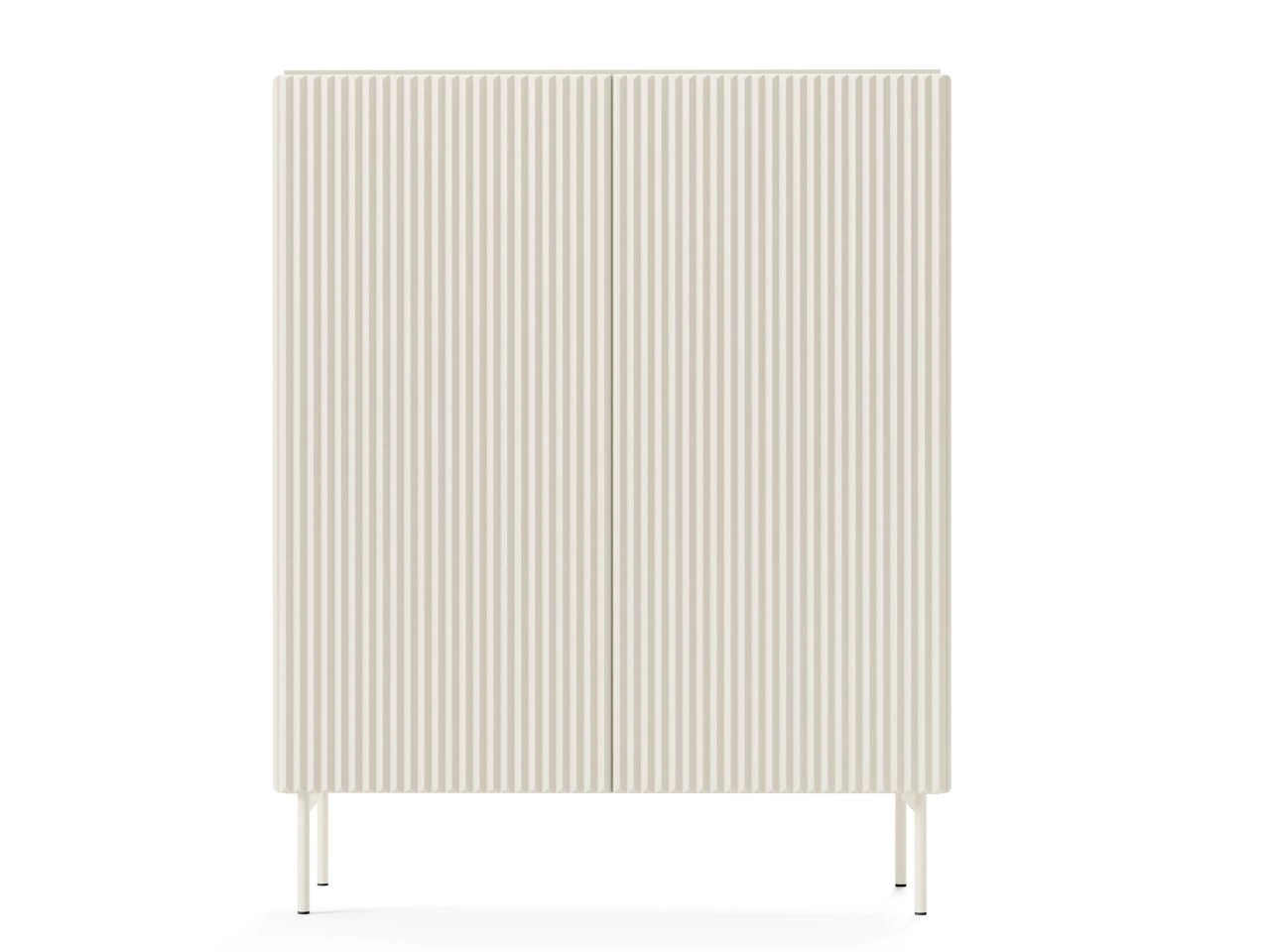 Kolektion Qualita zeichnet sich durch minimalistisches Design, harmonische Linienführung und elegante Details aus. Riffelfronten aus MDF, klare Formen und Metallbeine verleihen den Möbeln einen ausdrucksstarken, zeitgemäßen Look. Die Kombination aus ästhetischer Gestaltung und funktionalem Push-to-Open-System macht das Set zur idealen Wahl für moderne Wohnräume.