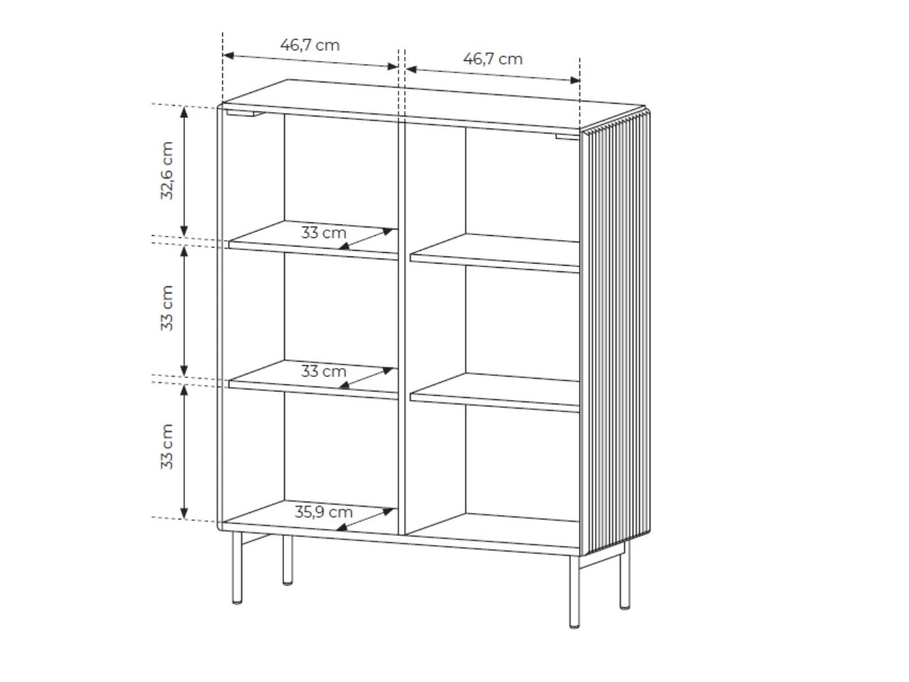 - Korpus und Front aus geriffelter MDF-Platte 18 mm