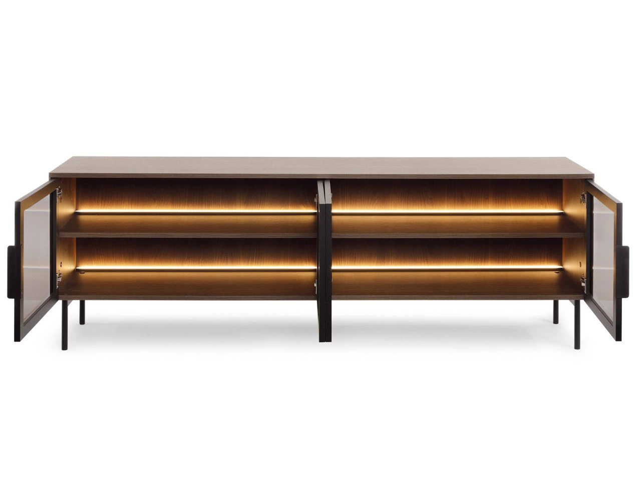 - Die Möbel verfügen über braunes Antisol-Glas – ein gehärtetes, getöntes Glas, das das Licht dezent dämpft und dem Gesamtbild einen eleganten, modernen Charakter verleiht