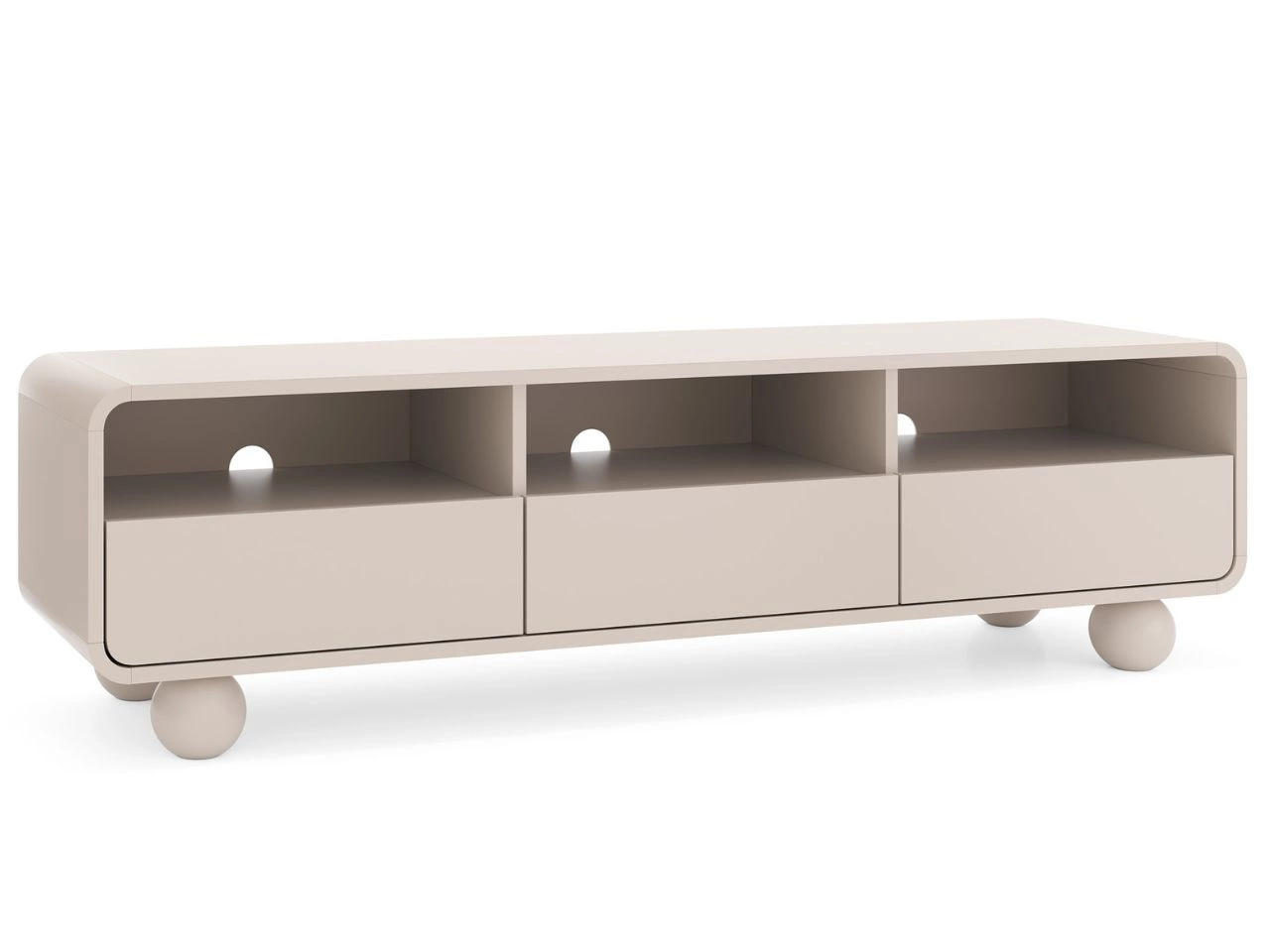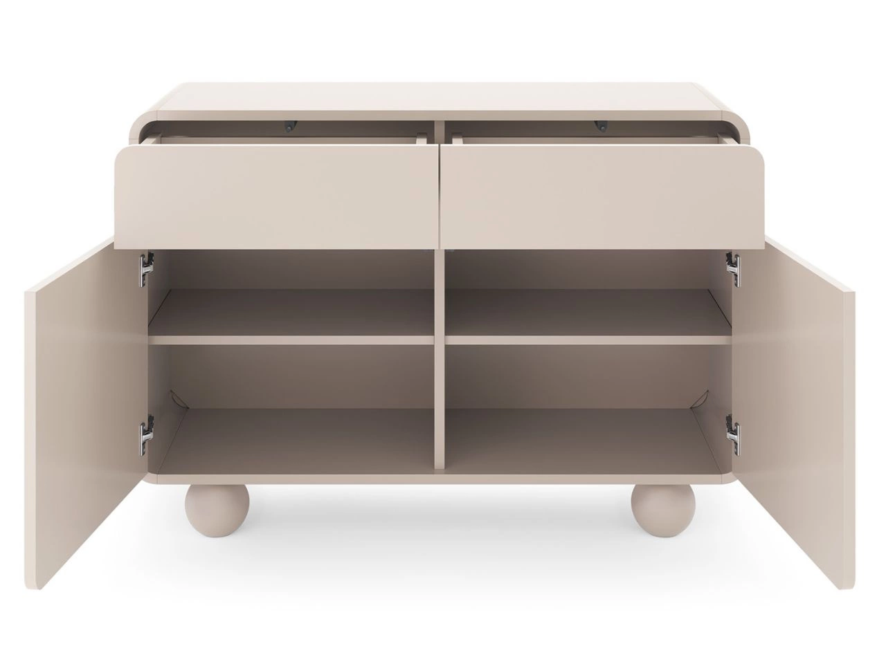 Das Soffio Wohnmöbel-Set ist eine moderne, harmonische Kollektion im trendigen Kaschmir-Farbton, gefertigt aus langlebiger, laminierter Platte und veredelt mit robusten ABS-Kanten, die Eleganz und Strapazierfähigkeit perfekt vereinen. Die gesamte Linie stützt sich auf markante, runde, geometrische Füße, die den Möbeln Leichtigkeit verleihen und den minimalistischen Stil unterstreichen. Geräumige Schubladen mit Kugelführung und Push-to-Open-System ermöglichen ein komfortables, geräuschloses Öffnen. Dieses Wohnzimmermöbelset ist die ideale Wahl für alle, die stilvolle, praktische und langlebige Wohnzimmermöbel suchen, die optisch einheitlich und zeitlos wirken.