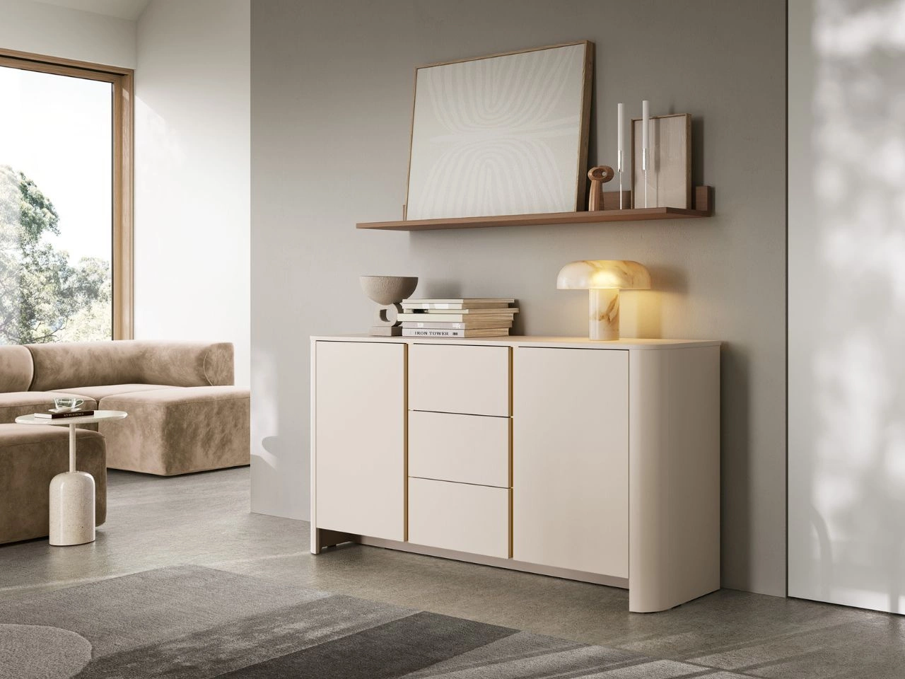 Zweitürige Kommode mit goldener Zierleiste Brillo Kaschmir