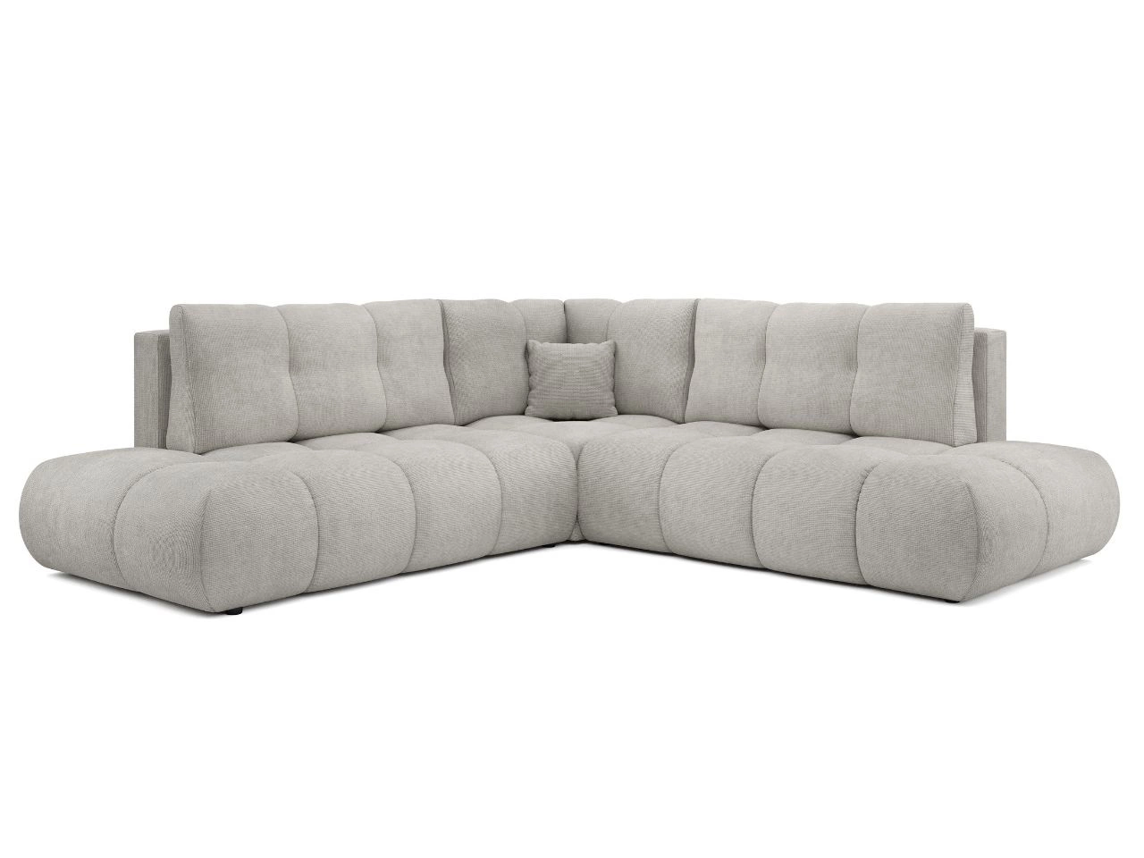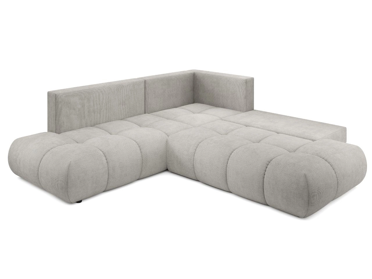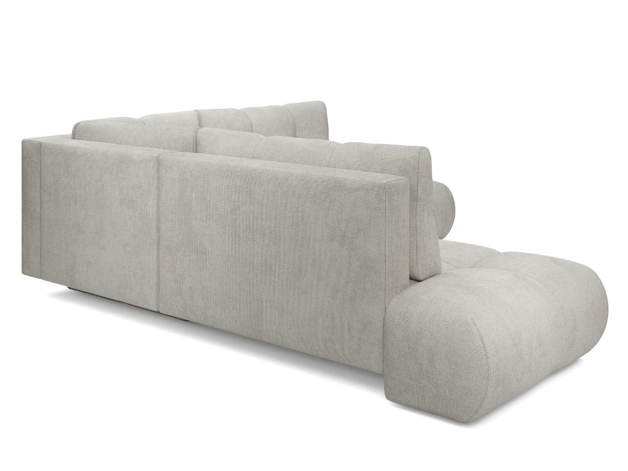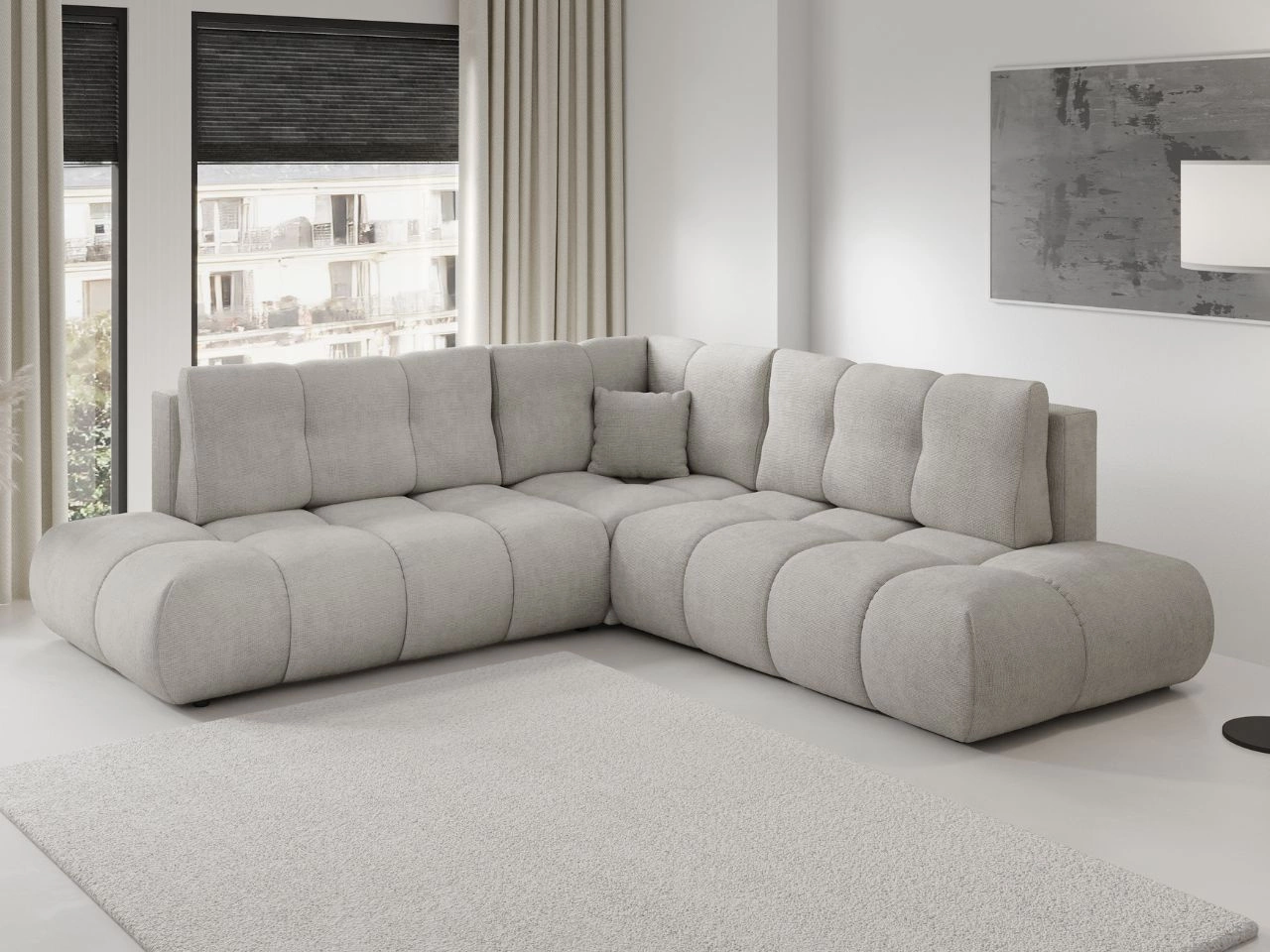 Ecksofa Kair ist ein modernes und äußerst komfortables Polsterecksofa, das für entspannte Momente im Alltag entwickelt wurde. Die weiche, abgerundete Form sowie die breiten, tiefen Sitzflächen schaffen eine besonders gemütliche Wohlfühlzone – ideal für das Wohnzimmer. Der Bezug aus einem Stoff mit deutlich sichtbarer, strukturierter Oberfläche verleiht dem Möbelstück einen eleganten und zeitlosen Charakter und passt hervorragend zu skandinavischen, modernen und minimalistischen Einrichtungen.