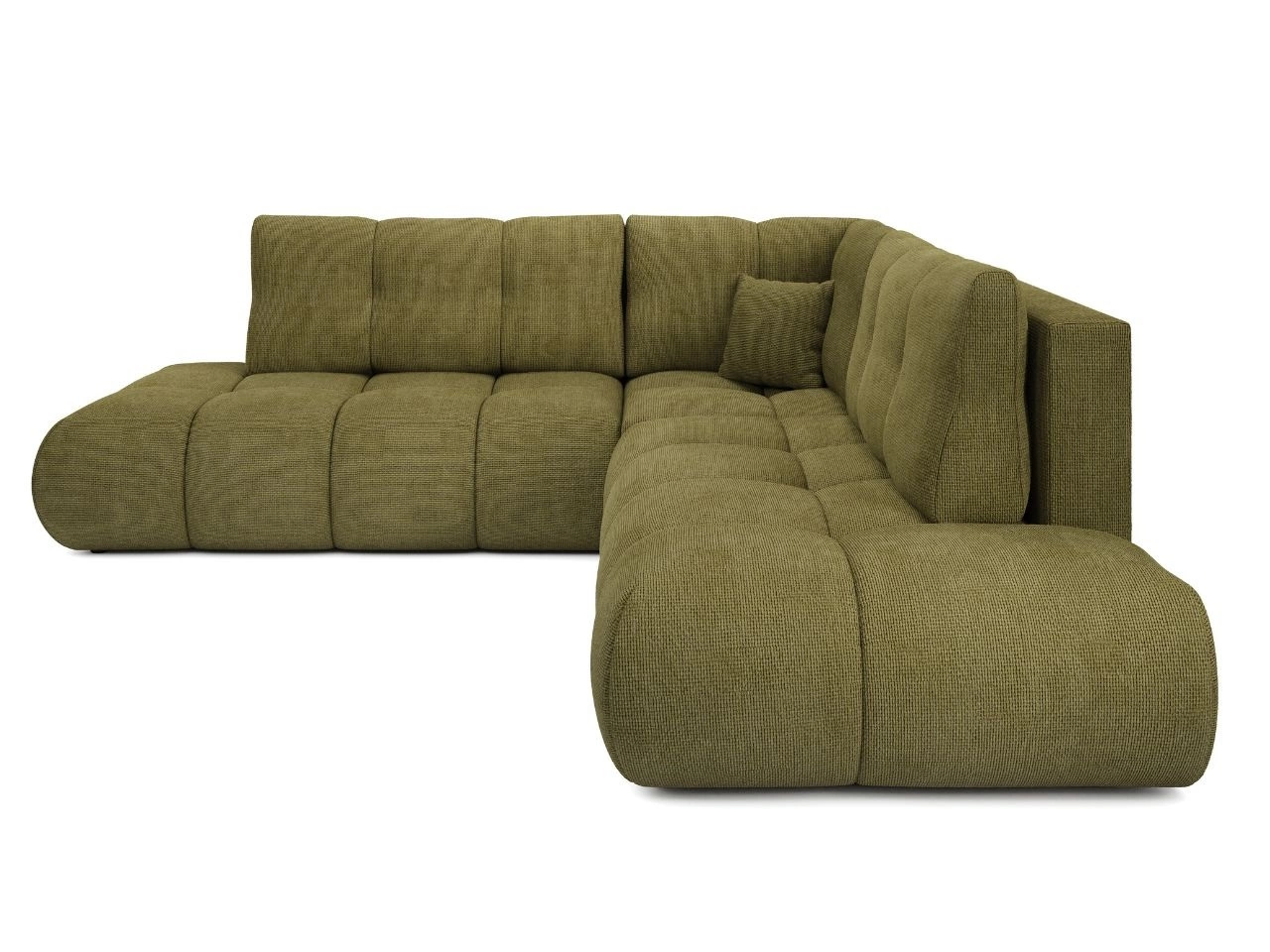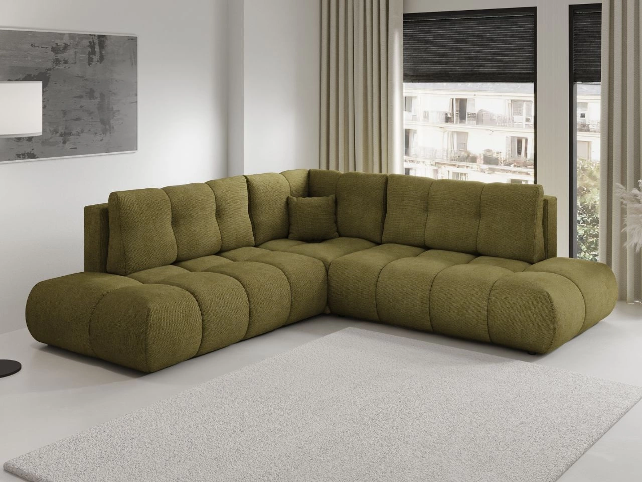 Ecksofa Kair ist ein modernes und äußerst komfortables Polsterecksofa, das für entspannte Momente im Alltag entwickelt wurde. Die weiche, abgerundete Form sowie die breiten, tiefen Sitzflächen schaffen eine besonders gemütliche Wohlfühlzone – ideal für das Wohnzimmer. Der Bezug aus einem Stoff mit deutlich sichtbarer, strukturierter Oberfläche verleiht dem Möbelstück einen eleganten und zeitlosen Charakter und passt hervorragend zu skandinavischen, modernen und minimalistischen Einrichtungen.