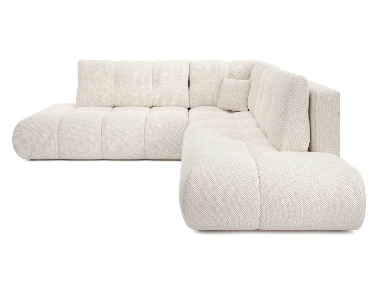 Ecksofa Kair ist ein modernes und äußerst komfortables Polsterecksofa, das für entspannte Momente im Alltag entwickelt wurde. Die weiche, abgerundete Form sowie die breiten, tiefen Sitzflächen schaffen eine besonders gemütliche Wohlfühlzone – ideal für das Wohnzimmer. Der Bezug aus einem Stoff mit deutlich sichtbarer, strukturierter Oberfläche verleiht dem Möbelstück einen eleganten und zeitlosen Charakter und passt hervorragend zu skandinavischen, modernen und minimalistischen Einrichtungen.