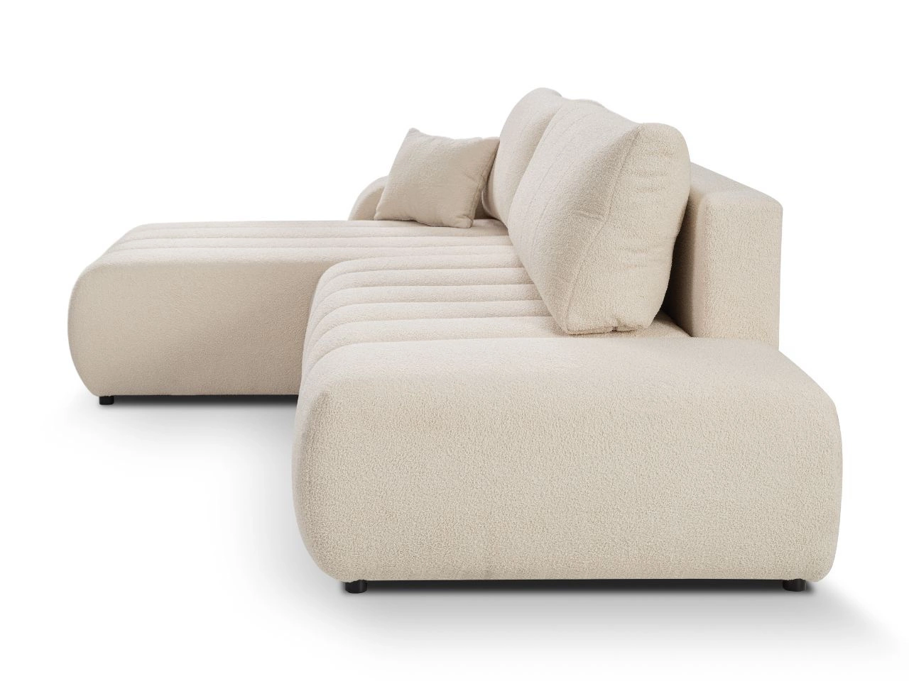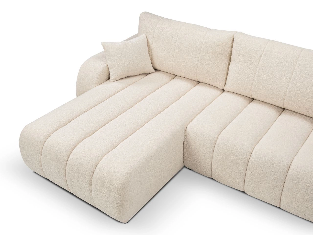 Ecksofa Adoro ist ein modernes, elegantes und äußerst komfortables polster Ecksofa, das für täglichen Komfort und eine harmonische Wohnraumgestaltung entwickelt wurde. Die klare, geometrische Form sowie die breiten, tiefen Sitzflächen schaffen eine großzügige Relaxzone für die ganze Familie. Die markanten vertikalen Absteppungen verleihen dem Sofa einen einzigartigen Rhythmus und unterstreichen den modernen, designerschen Charakter. Der einheitliche Bezug passt perfekt zu hellen, minimalistischen und zeitgemäßen Einrichtungen – ideal als stilvolles Ecksofa für das Wohnzimmer.