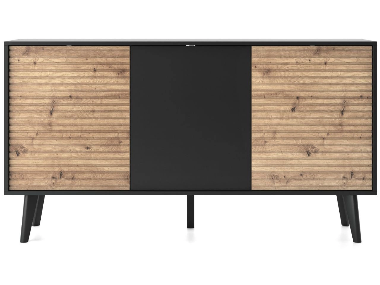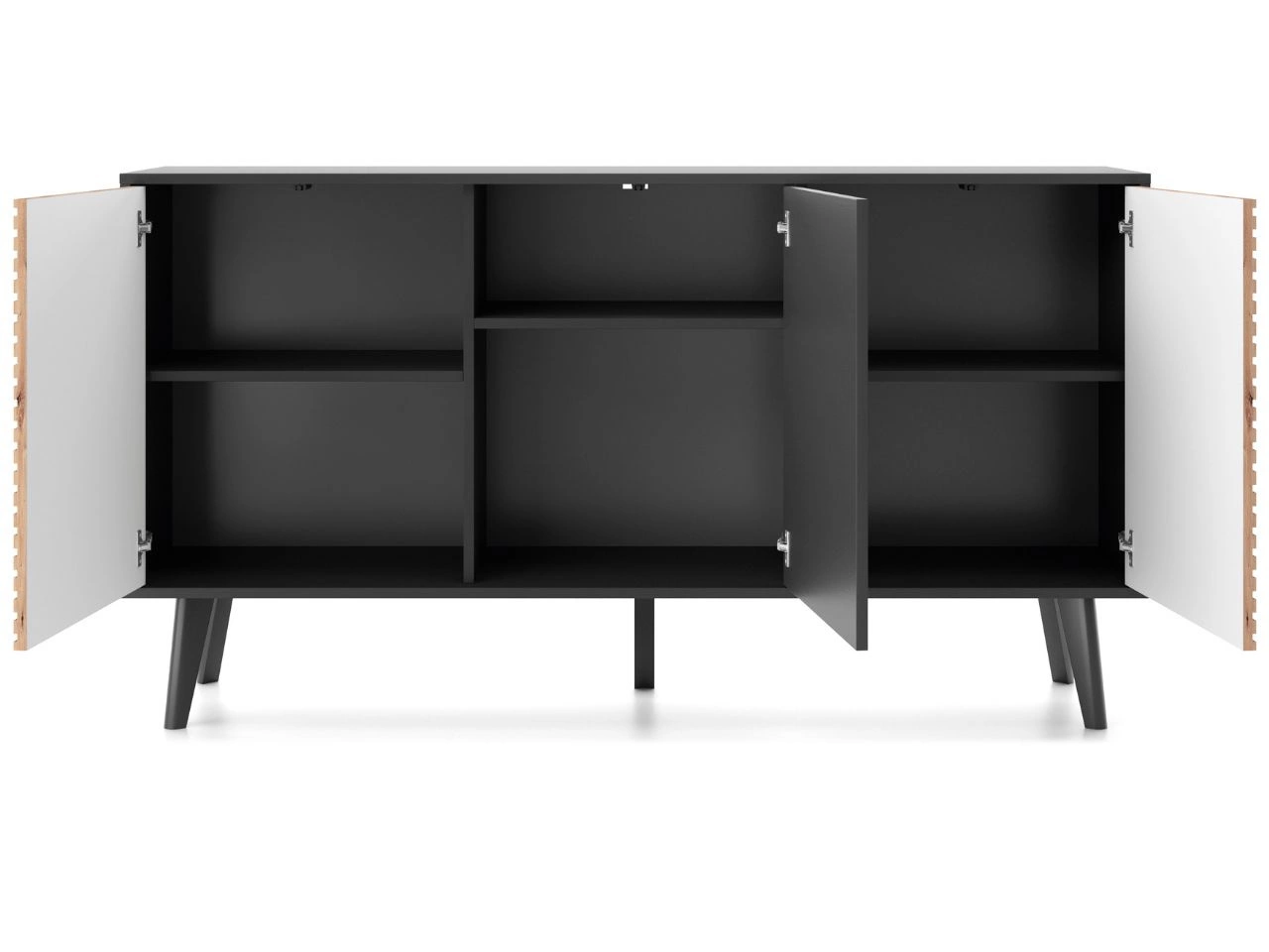 Türkommode Astro im Loft-Stil besticht durch ihr modernes Design, ihre einzigartige Form und ihre hochwertige Verarbeitung. Mit Holzbeinen in elegantem Schwarz, einem Korpus aus laminierter Platte und einer Front aus gewelltem MDF (18 mm) verbindet die Kommode Astro Langlebigkeit mit Ästhetik.