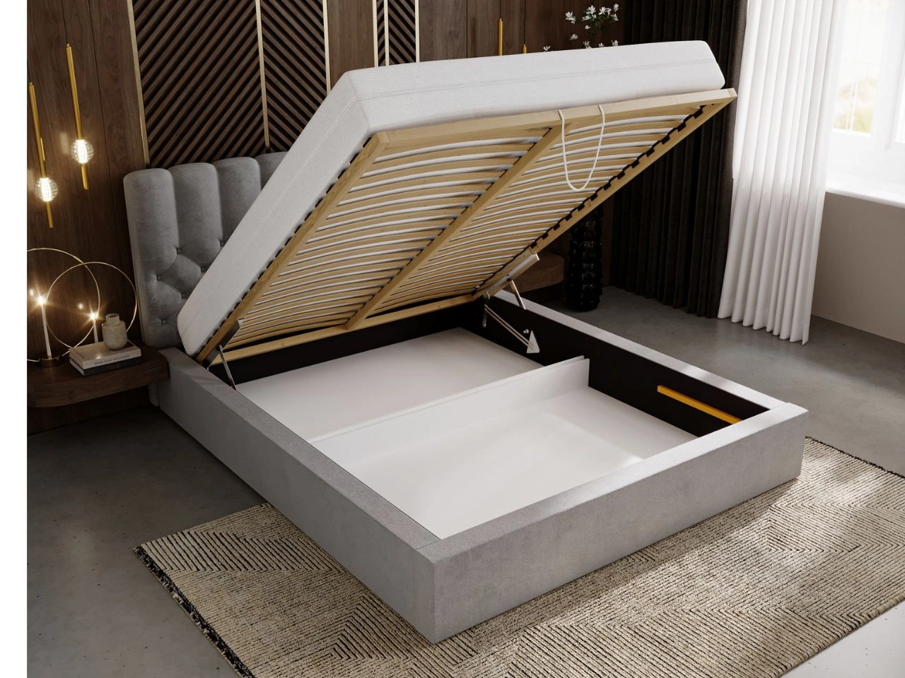 Polsterbett mit Bettkasten 140x200 Roma ist ein schöner Möbelstück im modernen Stil. Es ist die perfekte Wahl für anspruchsvolle Kunden, die Wert auf Schönheit und erstklassige Verarbeitung legen. Dank der sorgfältigen Ausführung und der verwendeten Materialien bietet das Bett nicht nur Ästhetik, sondern auch Langlebigkeit für viele Jahre.