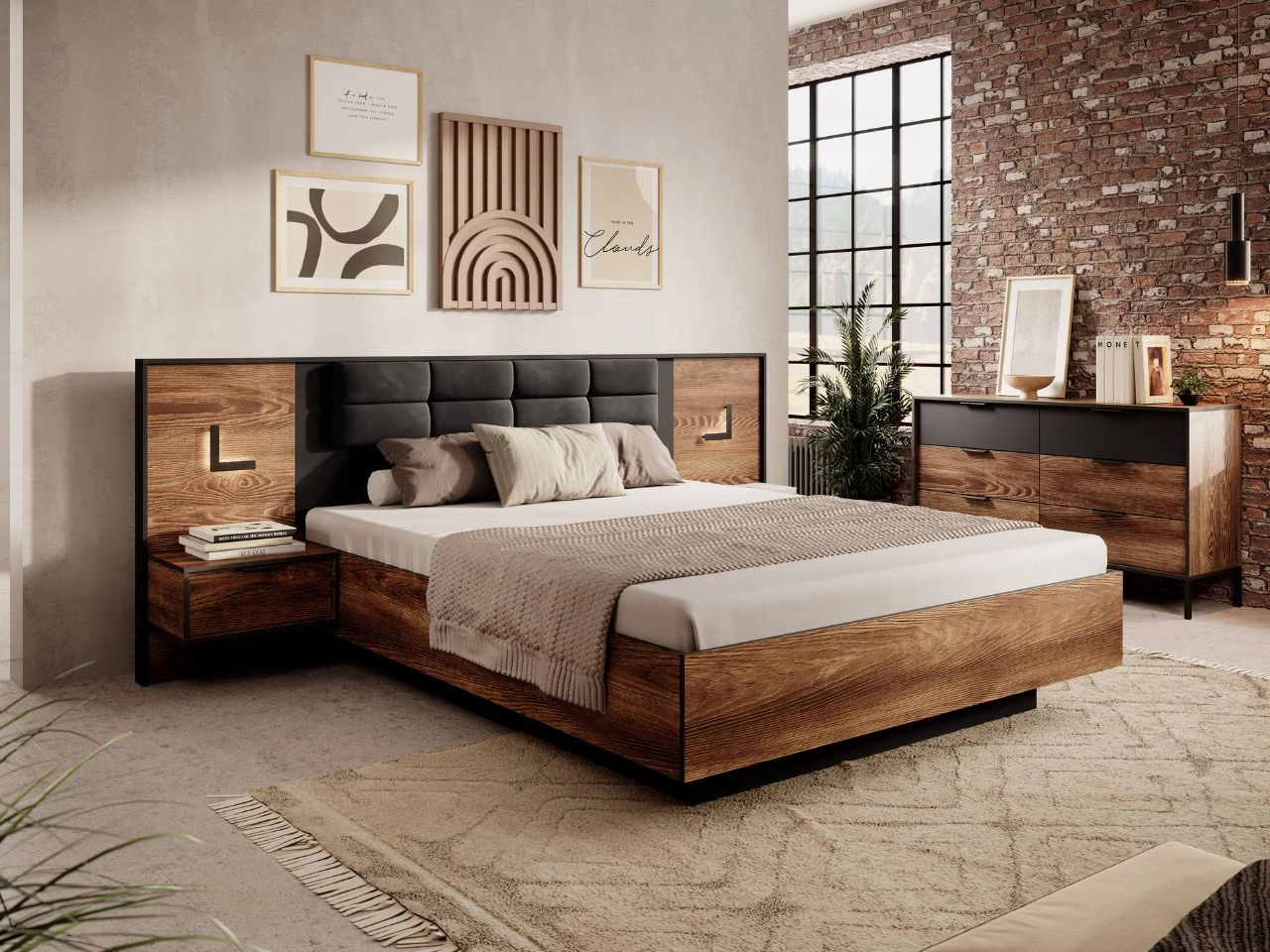Holzbett Montreal ist eine Kombination aus modernem Design und Eleganz, die perfekt in Innenräume im Loft- und Industriestil passt.