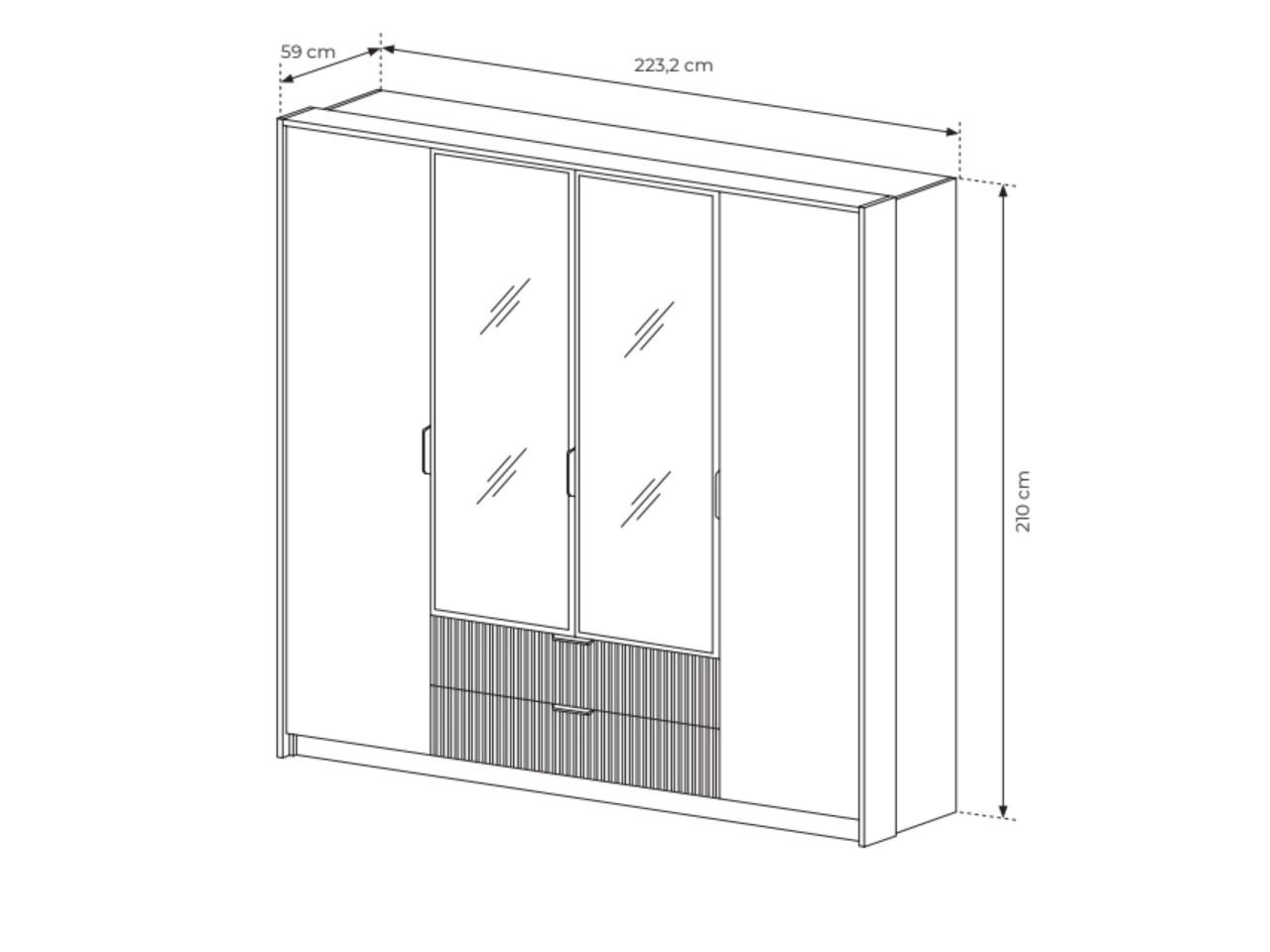 Kleiderschrank Bolzano ist die ideale Lösung für alle, die die Harmonie zwischen modernem Stil und praktischer Funktionalität suchen. Der aus hochwertigen Materialien gefertigte viertürige Kleiderschrank verbindet ästhetisches Design mit Funktionalität und erfüllt die Erwartungen des modernen Nutzers.