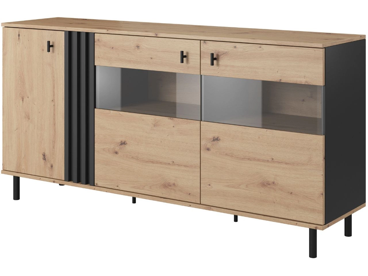 Dreitürige Kommode Malone mit einer Länge von 165 cm ist eine ideale Wahl für Menschen, die Wert auf modernes Design und hohe Verarbeitungsqualität legen. Aus langlebigen Materialien gefertigt, verbindet es Ästhetik mit Funktionalität und garantiert so jahrelange Freude. Sein universeller Stil passt perfekt in Loft-, Industrie- und moderne Arrangements.