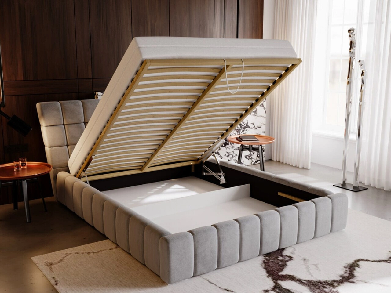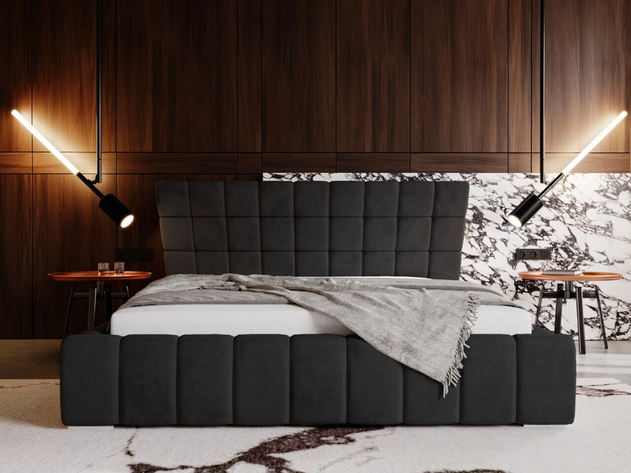 Polsterbett 160x200 Paris ist eine elegante und bequeme Lösung, die Komfort und unglaublichen Stil vereint. Es ist in einem wahrhaft königlichen Stil verarbeitet. Die Kopfstütze ist so konzipiert, dass sie beim Lesen oder Fernsehen eine bequeme Stütze bietet. Es ist im oberen Bereich breiter, was dem gesamten Möbelstück einen einzigartigen Charakter verleiht. Bett mit Bettkasten 160x200 Paris ist aus sorgfältig ausgewählten Polstermaterialien gefertigt, die sich angenehm anfühlen und leicht zu reinigen sind. Die solide Konstruktion des Möbels garantiert eine lange Nutzungsdauer.