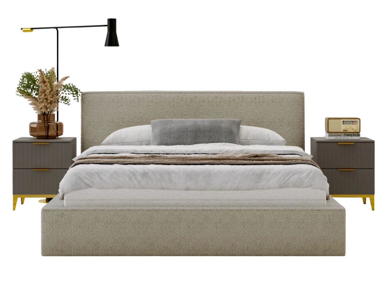 Der Bezug besteht aus hochwertigem Bouclé-Stoff Anthology, der durch seine weiche, schlingenartige Struktur und elegante Optik besticht. Der Stoff ist nicht nur angenehm weich, sondern auch besonders abriebfest, was das Bett dauerhaft gepflegt erscheinen lässt – auch bei täglicher Nutzung.