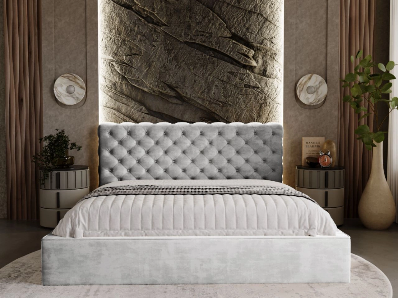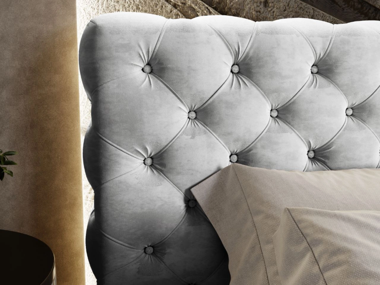 - Gepolstertes Bett im Chesterfield-Stil