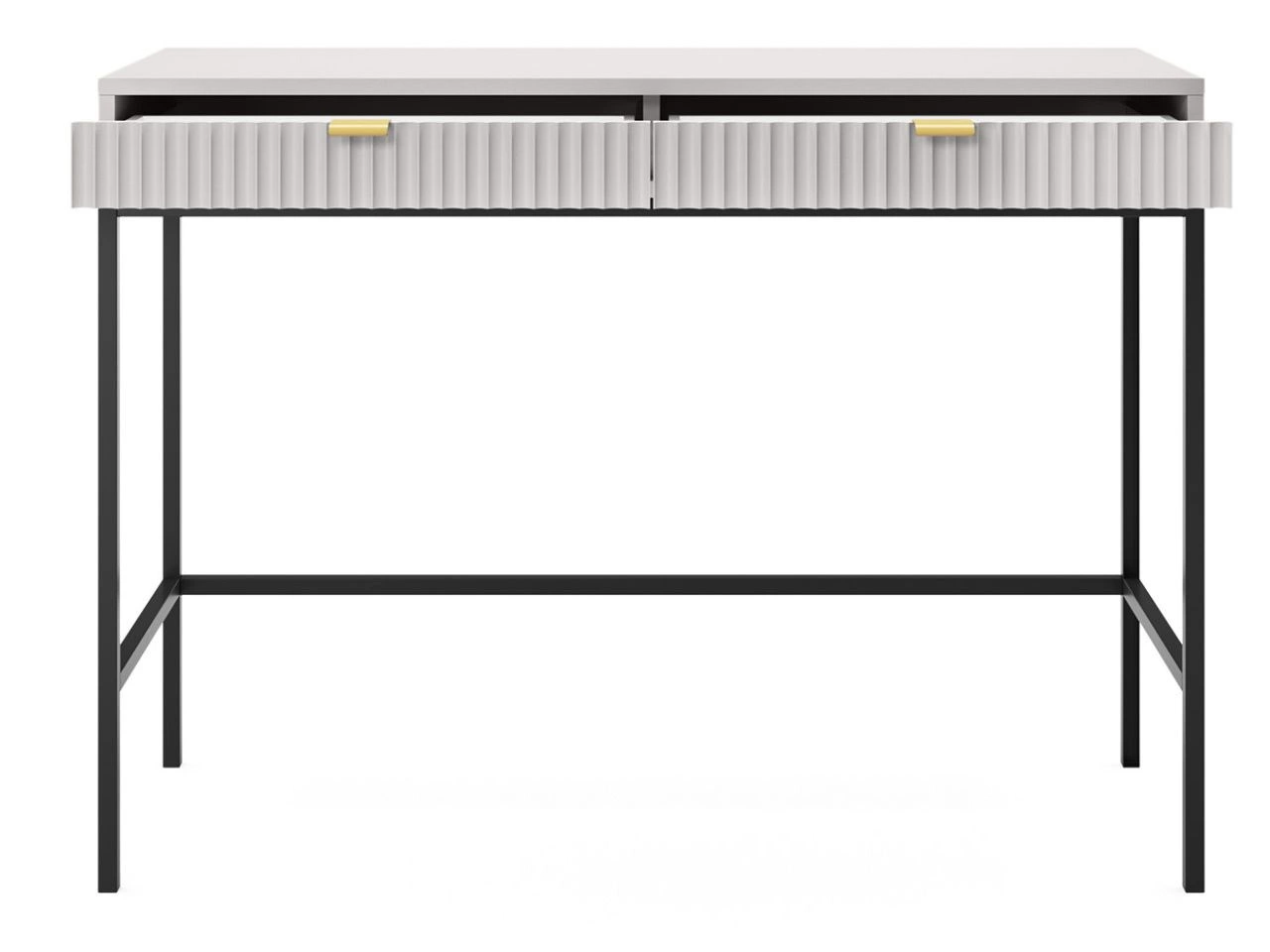 Der Schminktisch Amber verfügt über zwei Schubladen, die praktischen Stauraum für Kosmetik, Schmuck und verschiedene Accessoires bieten. Die markanten geriffelten Fronten unterstreichen den eleganten Charakter der Serie, während dezente Griffe das stilvolle Gesamtbild abrunden. Wir sind überzeugt, dass der Schminktisch Amber nicht nur optisch begeistert, sondern auch für Ordnung und Komfort im Raum sorgt.