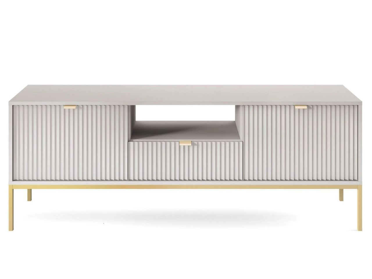 TV-Lowboard mit Schublade und Türen Amber Grau auf goldenen Beinen