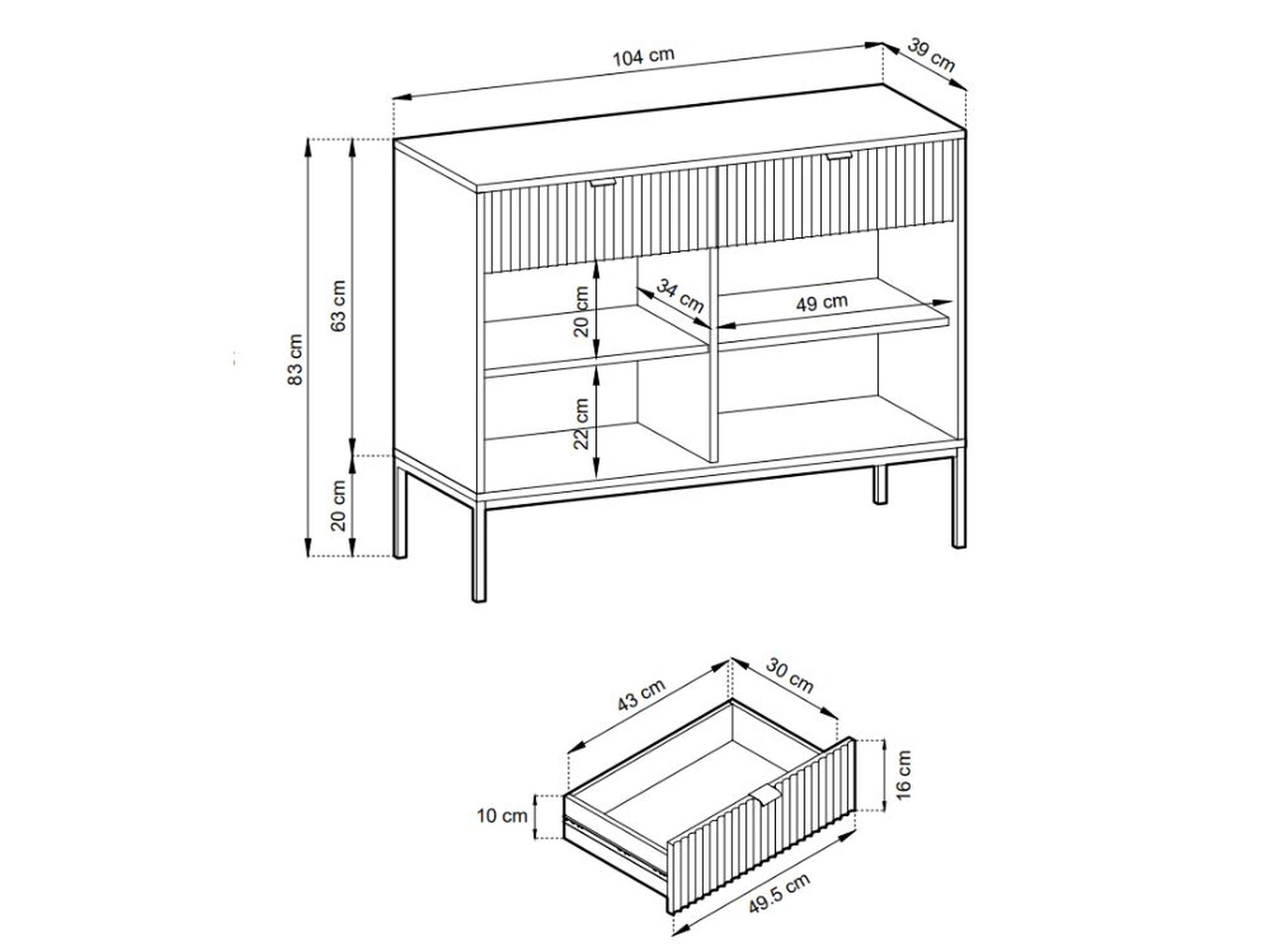 - Korpus aus 16 mm laminiertem Holzwerkstoff, widerstandsfähig und pflegeleicht