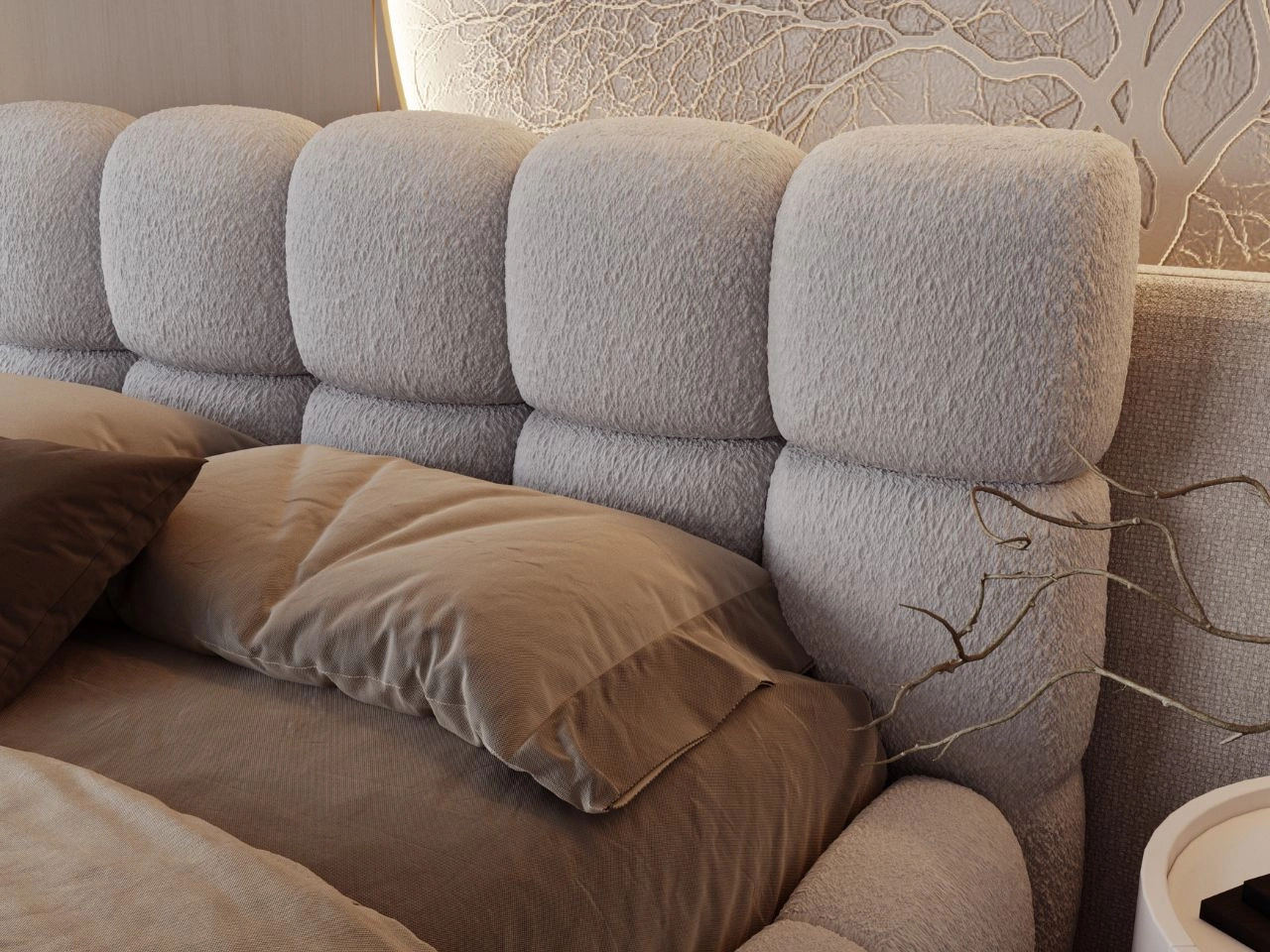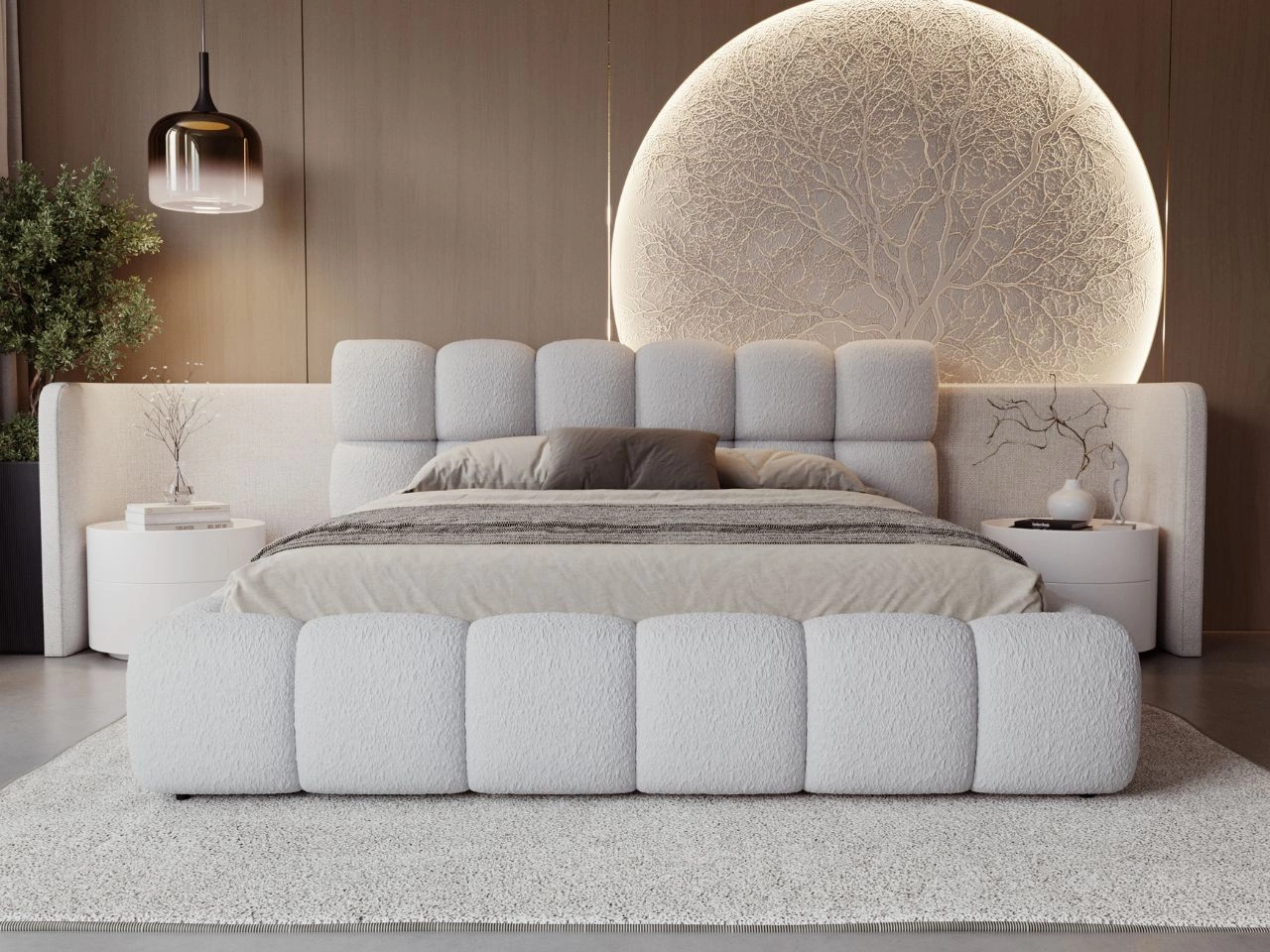 Polsterbett Modo ist mit dem Stoff Anthology aus der Materialgruppe Bouclé bezogen, der sich durch eine charakteristische Schlingenstruktur und leicht unregelmäßige, lebendige Oberfläche auszeichnet. Der Stoff wirkt nicht nur ausgesprochen dekorativ, sondern ist auch angenehm weich und griffig. Dank der hohen Scheuerbeständigkeit bleibt die Polsterung lange formstabil und behält ihr gepflegtes Aussehen über viele Jahre.