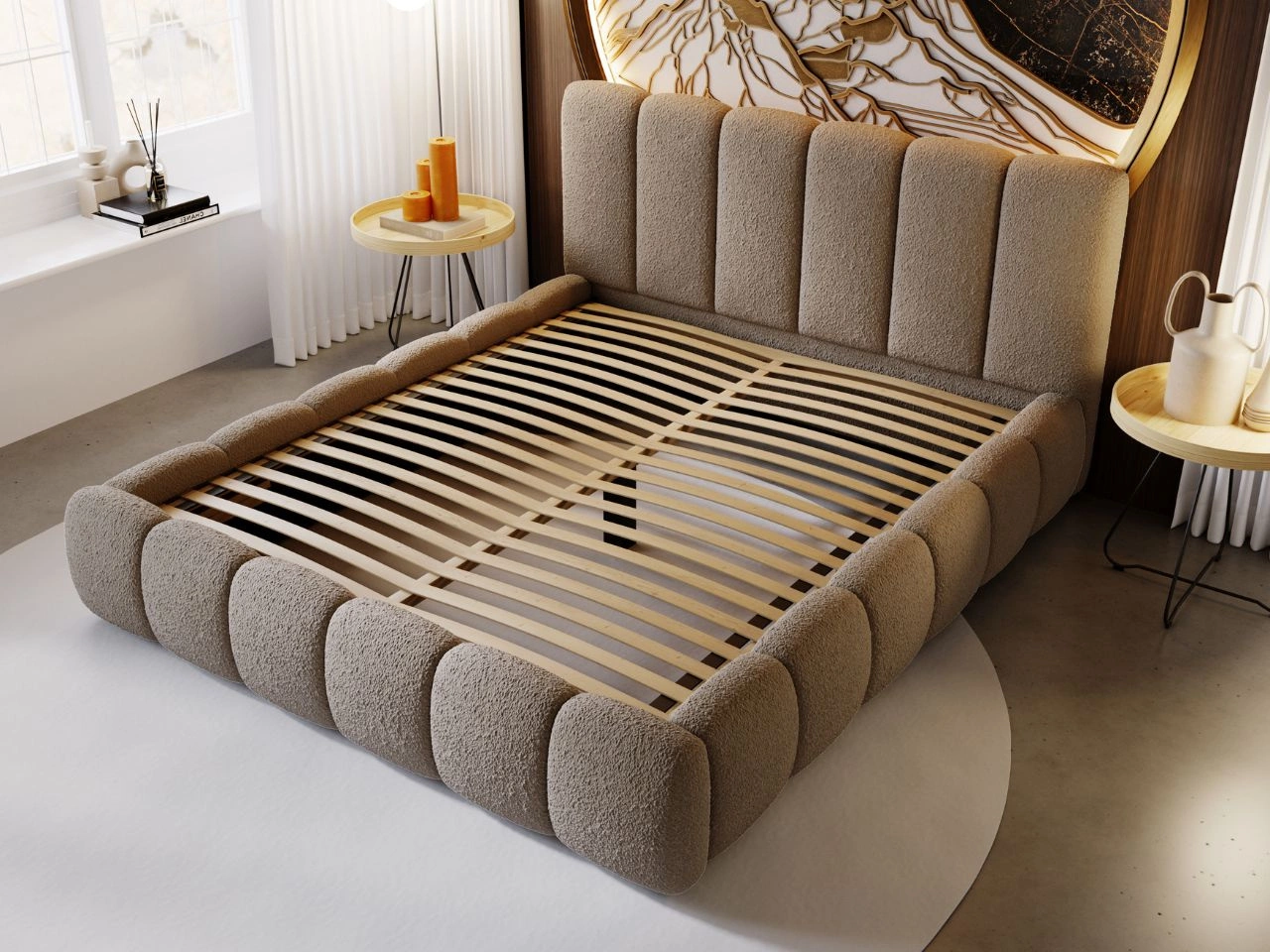 Polsterbett ohne Bettkasten mit Lattenrost 180x200 Cloud aus Bouclé-Stoff Braun