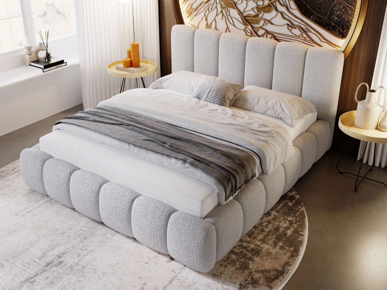 Das gepolsterte Doppelbett Cloud ist die perfekte Wahl für alle, die ein Polsterbett, ein Bett ohne Stauraum oder allgemein ein modernes Bett fürs Schlafzimmer suchen, das hochwertiges Design mit erstklassigem Schlafkomfort verbindet. Die weich modellierte Form entsteht durch eine großzügige Schaumstoffpolsterung und einen Stoff mit edler Struktur, wodurch das gepolsterte Bett mit Kopfteil eine behagliche, fast schon luxuriöse Atmosphäre in jedes Schlafzimmer bringt. Die stabile, robuste Holzkonstruktion sorgt für Langlebigkeit, während die verschiedenen Größen – von 120x200 cm bis 200x200 cm — das moderne Polsterbett zu einer idealen Lösung sowohl für kleinere Schlafzimmer als auch für große, großzügige Räume machen.