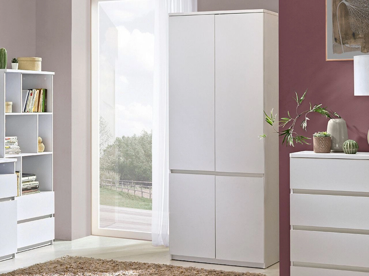 Kleiderschrank mit Drehtüren und Kleiderstange 80 Arcadia Weiß