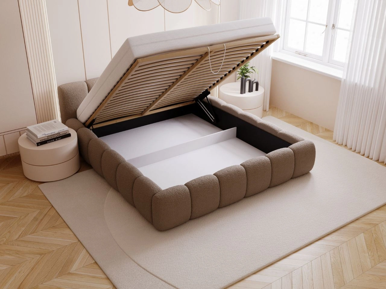 Polsterbett mit Bettkasten und Lattenrost 180x200 Cloud Low Bouclé-Stoff Braun