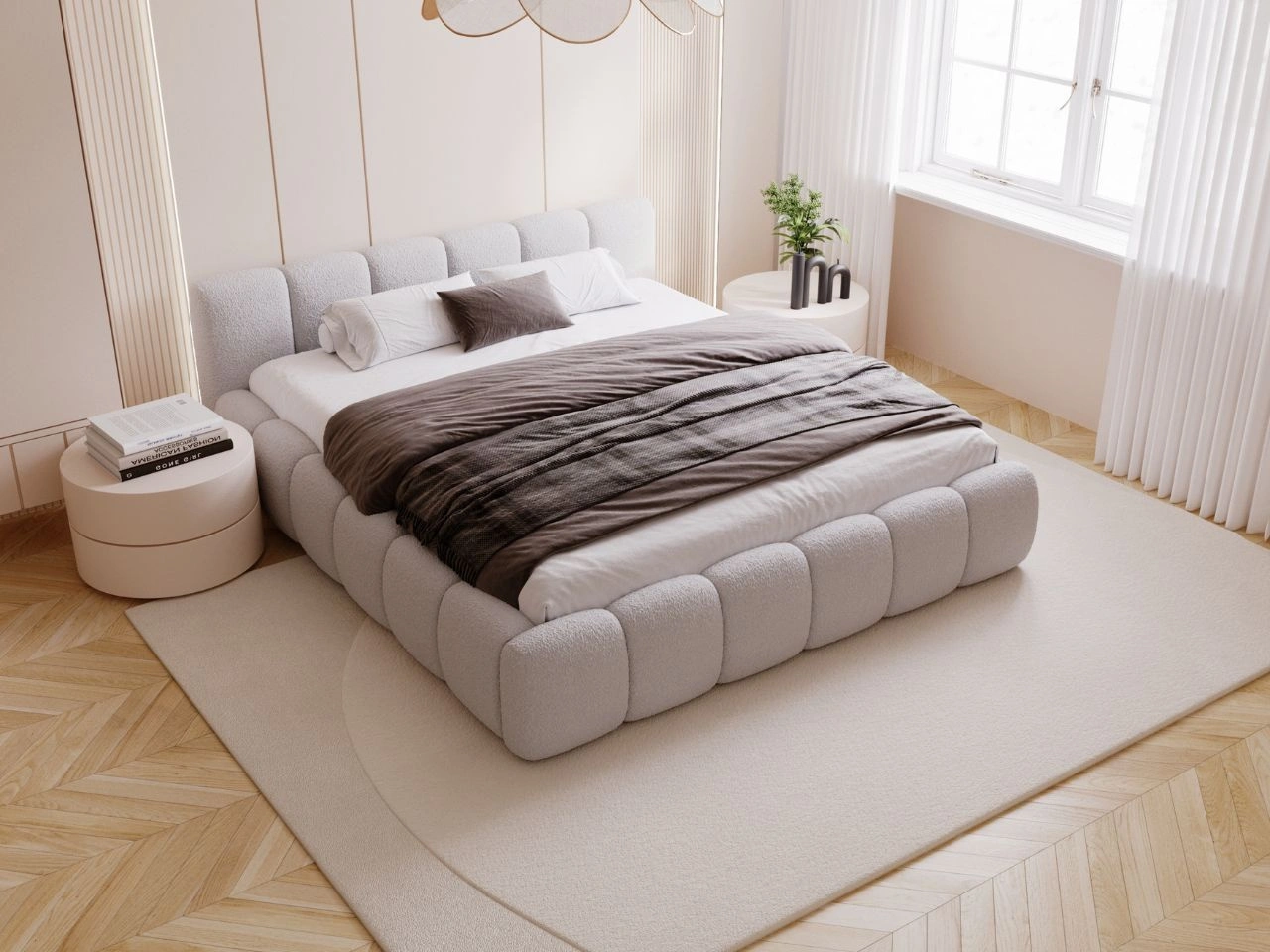 Polsterbett mit Bettkasten und Lattenrost 200x200 Cloud Low Bouclé-Stoff Grau