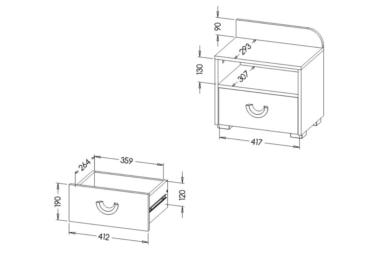 Die Schubladen der Jugendzimmermöbel sind mit Rollenführungen ausgestattet, die ein sanftes und leises Öffnen ermöglichen, während die durchdachten Regale und offenen Ablageflächen Platz für Bücher, Kleidung, Accessoires und Dekorationen bieten. Das Möbelset für Jugendliche vereint Funktionalität mit Langlebigkeit – alle Elemente bestehen aus robusten Laminatplatten und sind mit PVC-Kanten geschützt, was zusätzlichen Schutz vor Beschädigungen bietet und die Sicherheit im Alltag erhöht.