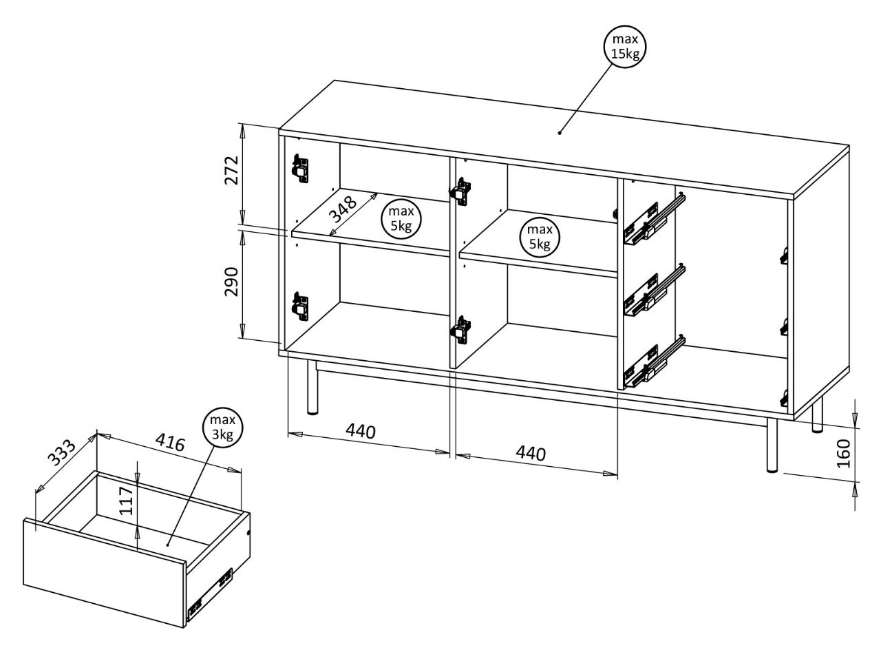 - Korpus aus laminierter Möbelplatte 16 mm in geölter Eichenoptik