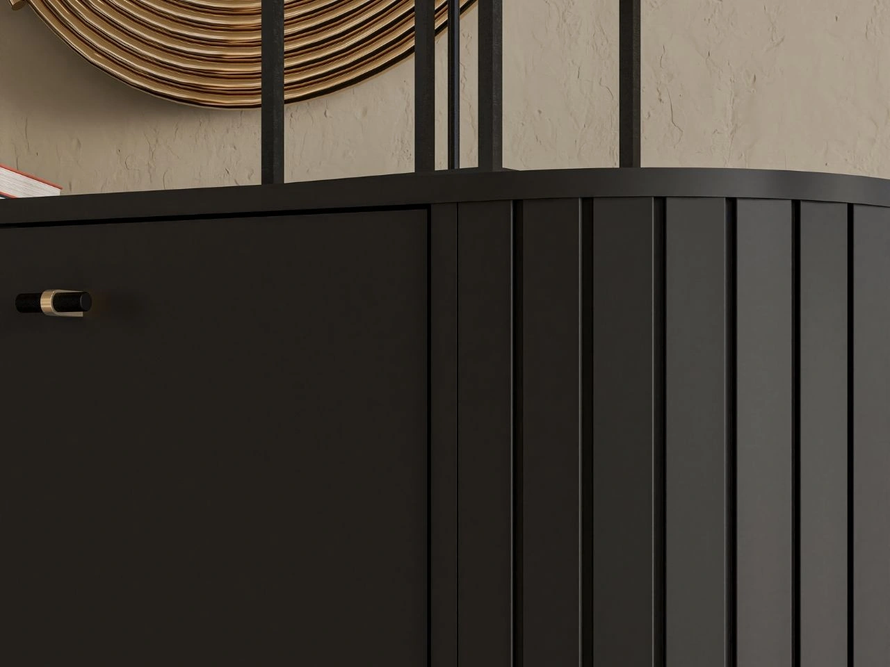 Die Kollektion Soria ist eine elegante Möbelserie für Wohn- und Esszimmer, entworfen für moderne Interieurs. Vertikale Riffelungen, abgerundete Kanten sowie die Verfügbarkeit in Schwarz oder Kaschmir verleihen den Möbeln einen zeitlosen und edlen Charakter. Schwarz-goldene Details in Form von Stahlfüßen und Griffen unterstreichen den modernen Glamour-Stil der Kollektion. Durchdachte Innenaufteilungen, gehärtetes Glas und LED-Beleuchtung verbinden Ästhetik mit hohem Alltagskomfort.