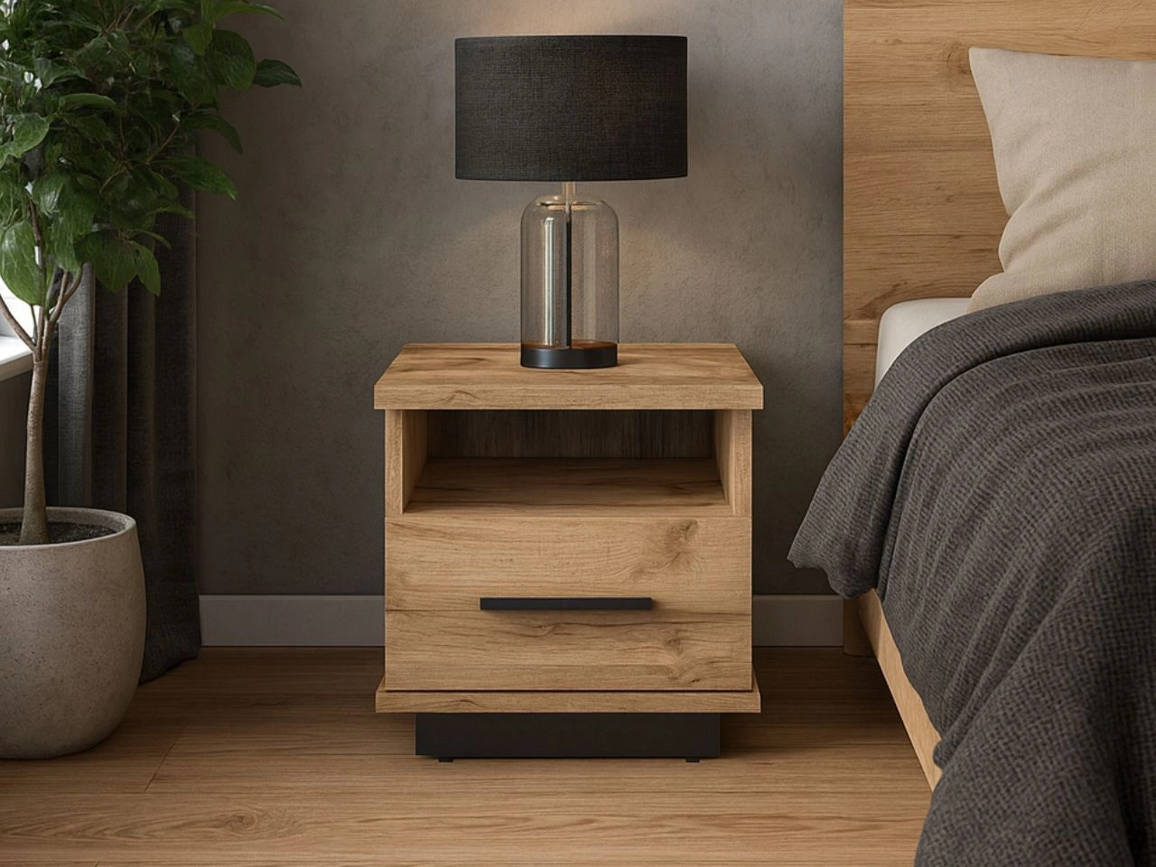 Nachttisch mit Schublade fürs Schlafzimmer Lavore Wotan Eiche, Schwarz matt