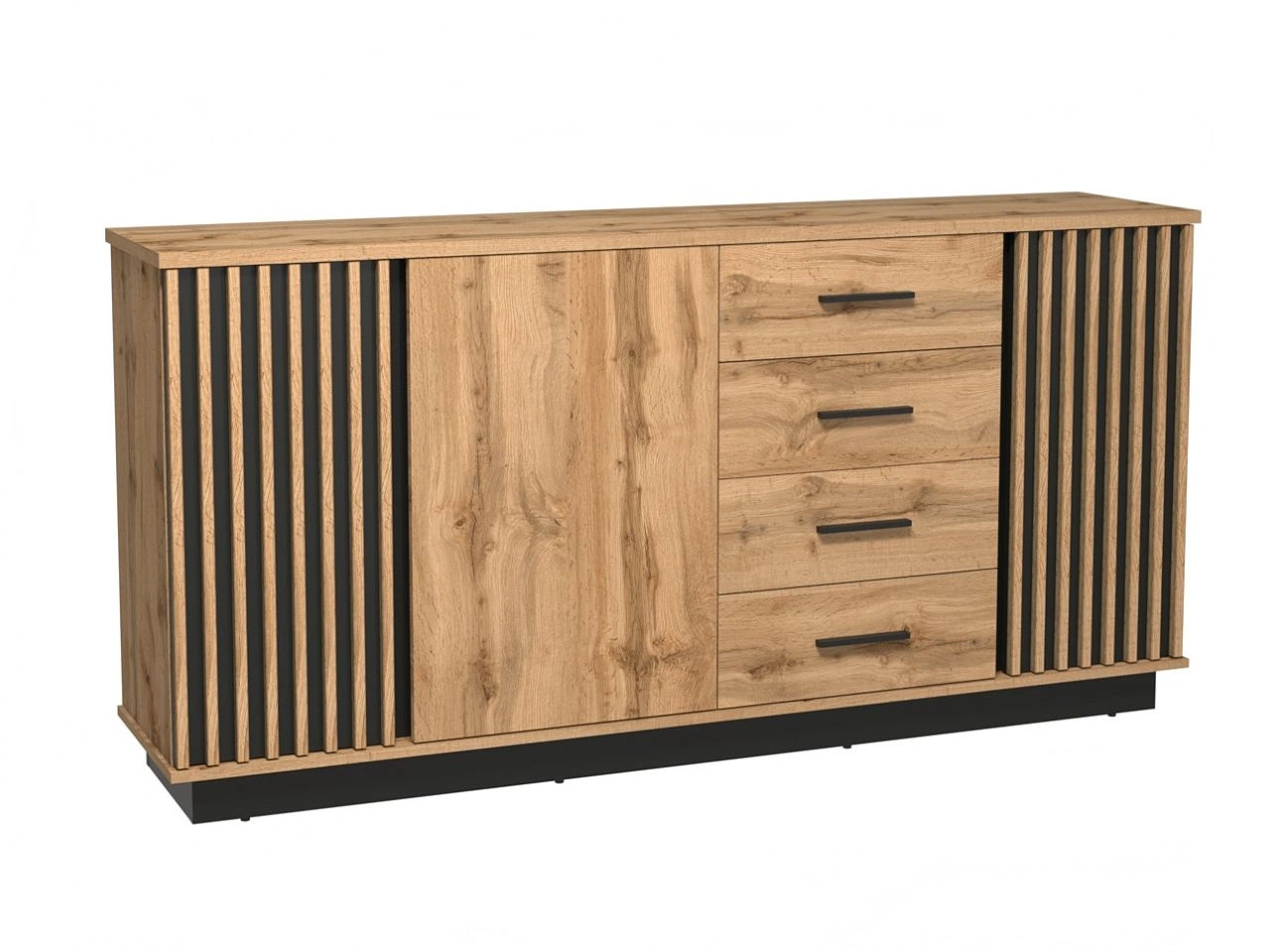 Dreitürige Kommode mit Schubladen und Latten Lavore Wotan Eiche, Schwarz matt