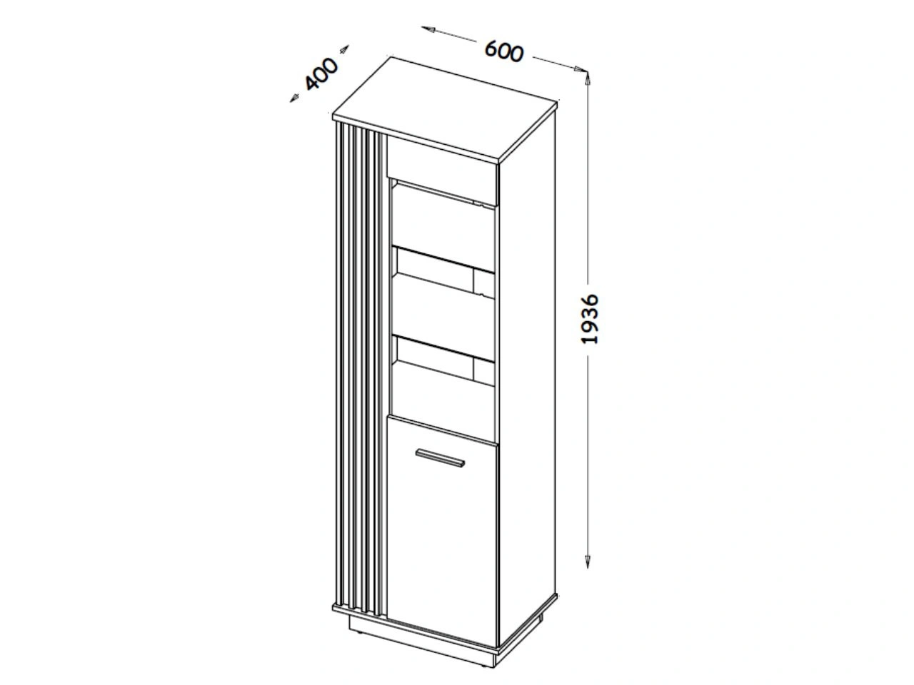 Die breite Vitrine bietet zusätzlichen Stauraum für größere Gegenstände und bewahrt gleichzeitig das stimmige Design der Kollektion.