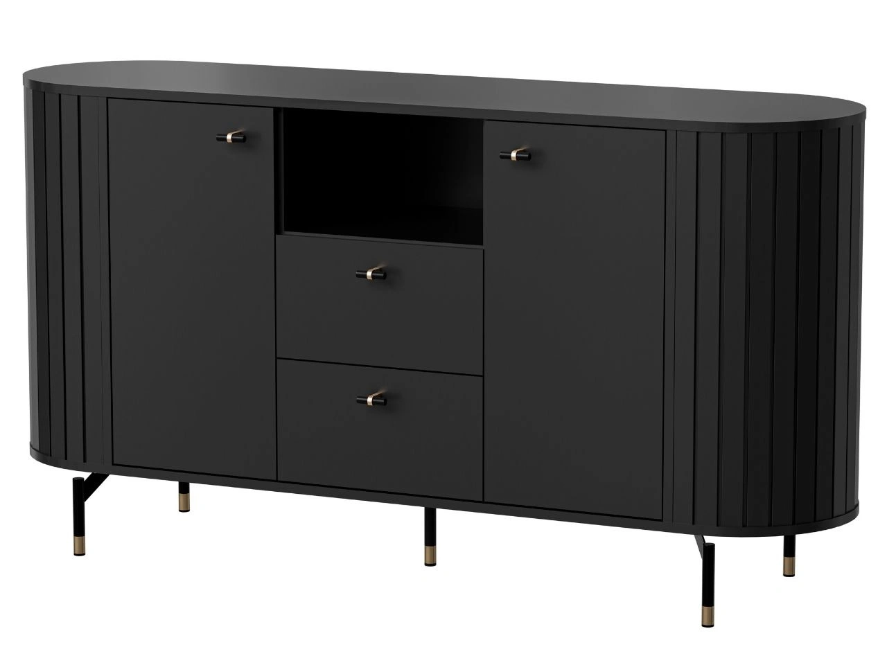 Möbelset Soria in der Ausführung Schwarz matt unterstreicht den ruhigen, aufgeräumten Charakter des Schlafzimmers und verbindet moderne Eleganz mit einer angenehmen, wohnlichen Atmosphäre. Die tiefmatten Fronten in Kombination mit vertikalen Rillen sowie feinen schwarz-goldenen Details verleihen dem Raum Harmonie und einen dezenten Premium-Effekt.