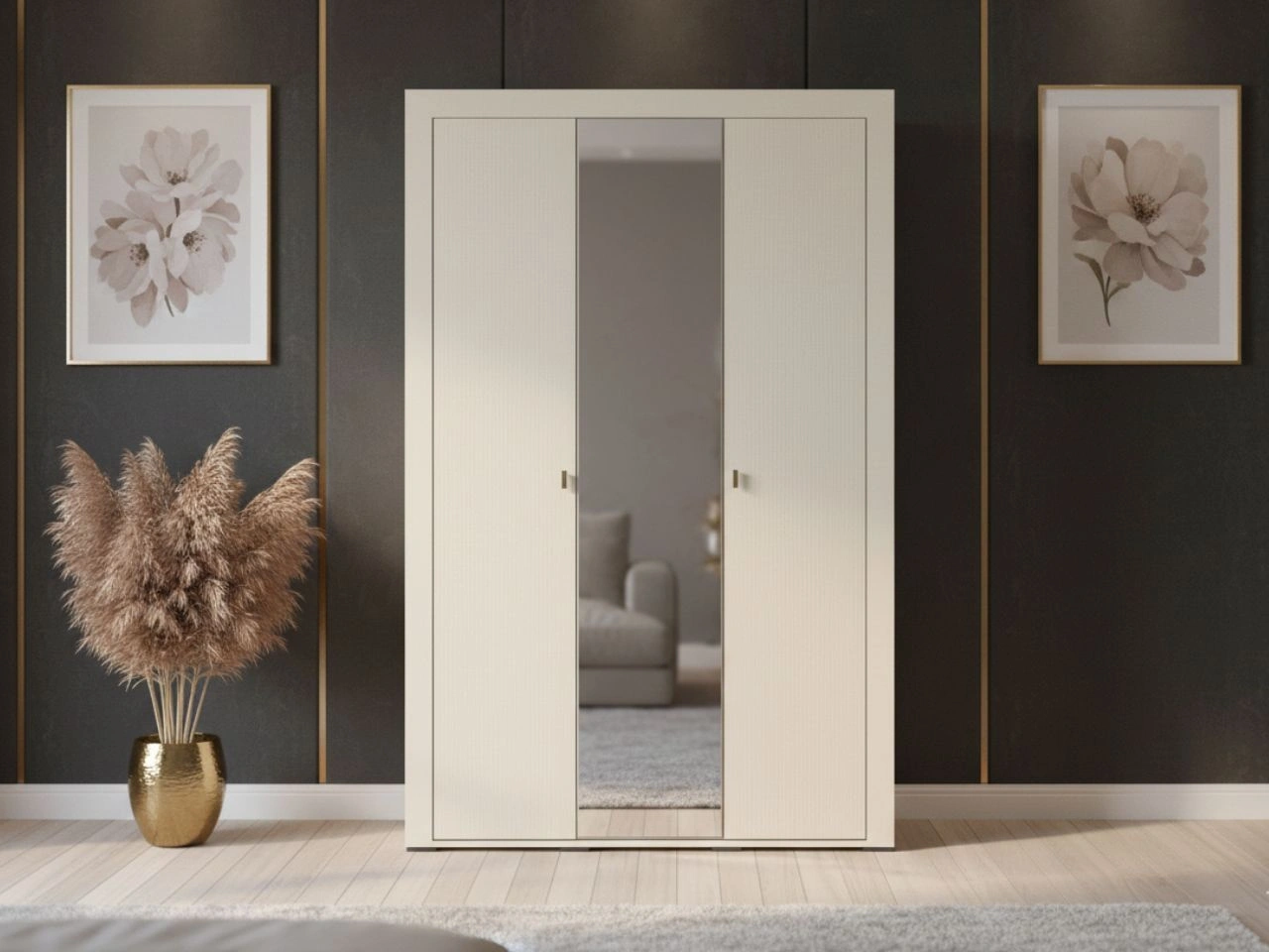 Wenn Sie einen modernen Kleiderschrank mit Spiegel und geriffelter Front suchen, der Funktionalität, solide Verarbeitung und elegantes Design vereint, ist der dreitürige Kleiderschrank Messina die ideale Wahl für ein stilvolles Zuhause.