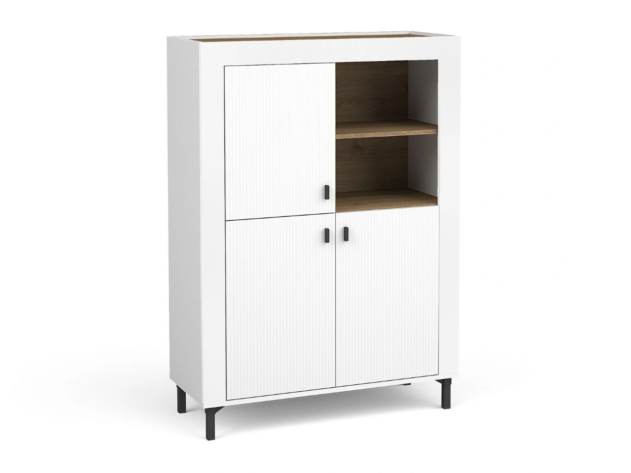 Die Kollektion Messina ist eine moderne Möbelserie, die für harmonische und elegante Wohn- und Essbereiche entwickelt wurde. Charakteristische vertikale Riffelungen auf den Fronten sowie klare, geordnete Formen verleihen den Möbeln einen zeitlosen, modernen Look. Die Kollektion verbindet modernes Design mit Funktionalität und bietet eine hochwertige Verarbeitung sowie ein ästhetisches Finish. Die Möbel der Kollektion Messina sind in drei Farbvarianten erhältlich: Schwarz, Kaschmir und Weiß.