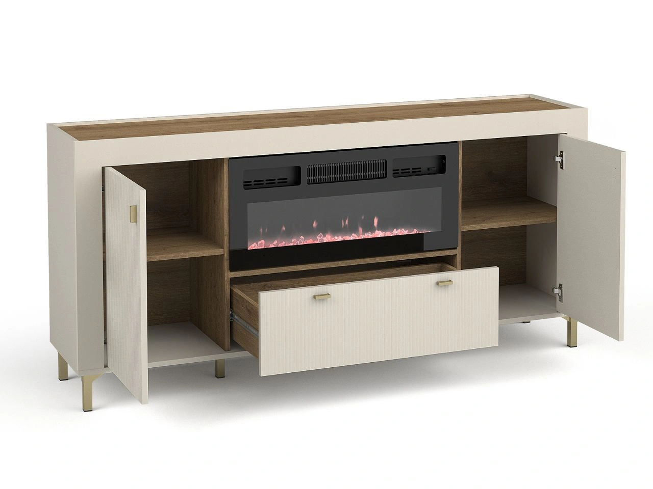 Kommode mit Türen, Schublade und Kamin Messina Kaschmir