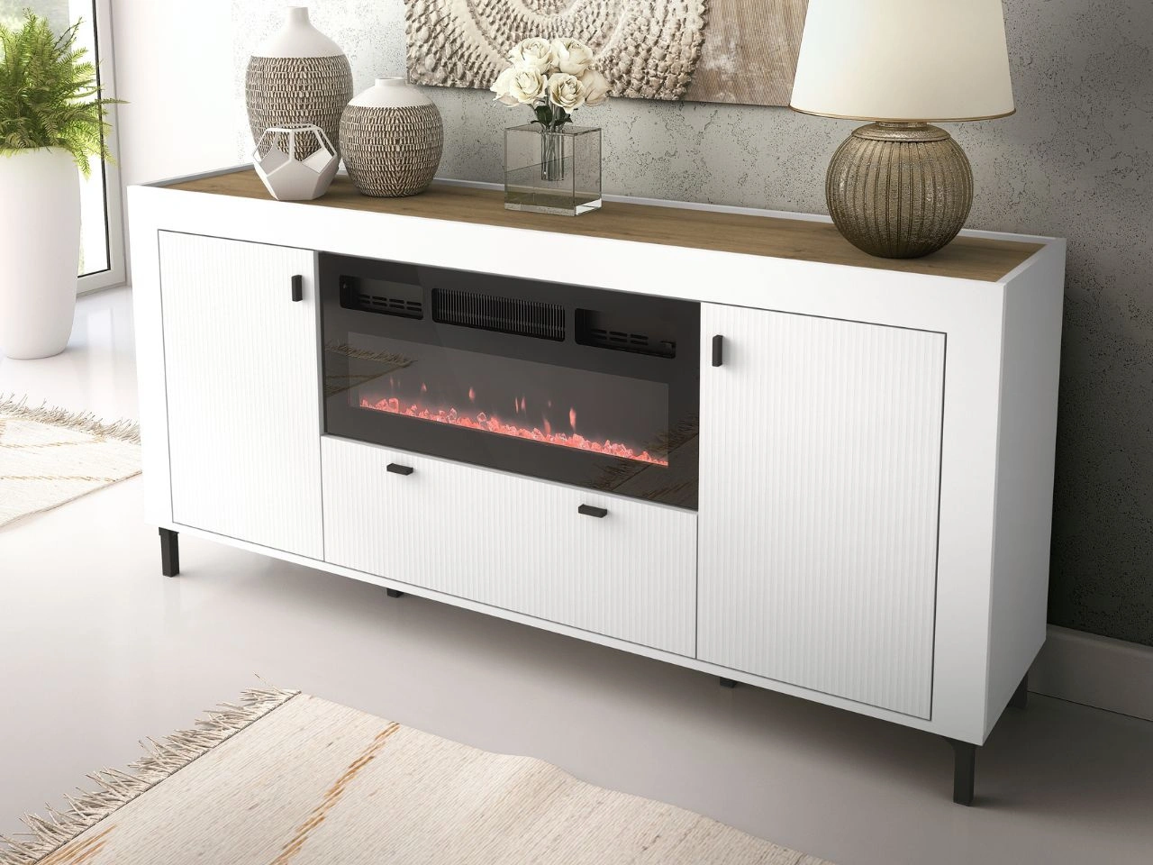 Kommode mit Türen, Schublade und Kamin Messina Weiß