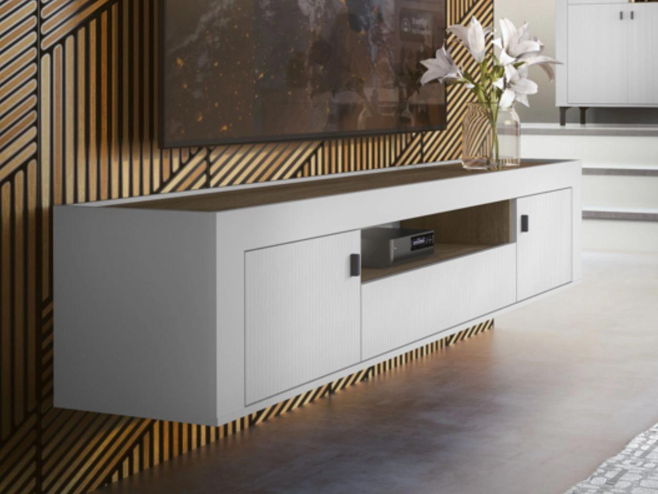 Das TV-Lowboard Messina ist die perfekte Wahl für alle, die ein stilvolles und funktionales TV-Möbel suchen, das modernes Design, praktische Stauraumlösungen und flexible Montagemöglichkeiten vereint – sowohl stehend als auch hängend.
