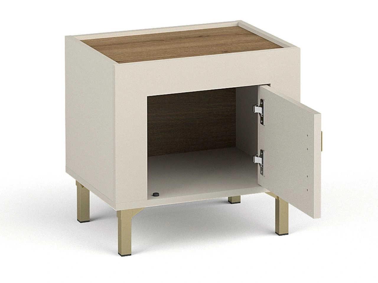 Im Inneren bietet der Tisch eine geschlossene Stauraumfläche, ideal für Bücher, kleine Accessoires, Ladegeräte oder andere Alltagsgegenstände, die griffbereit, aber außer Sichtweite aufbewahrt werden sollen. Dank seiner kompakten Maße eignet sich das Möbel auch hervorragend für kleinere Räume.