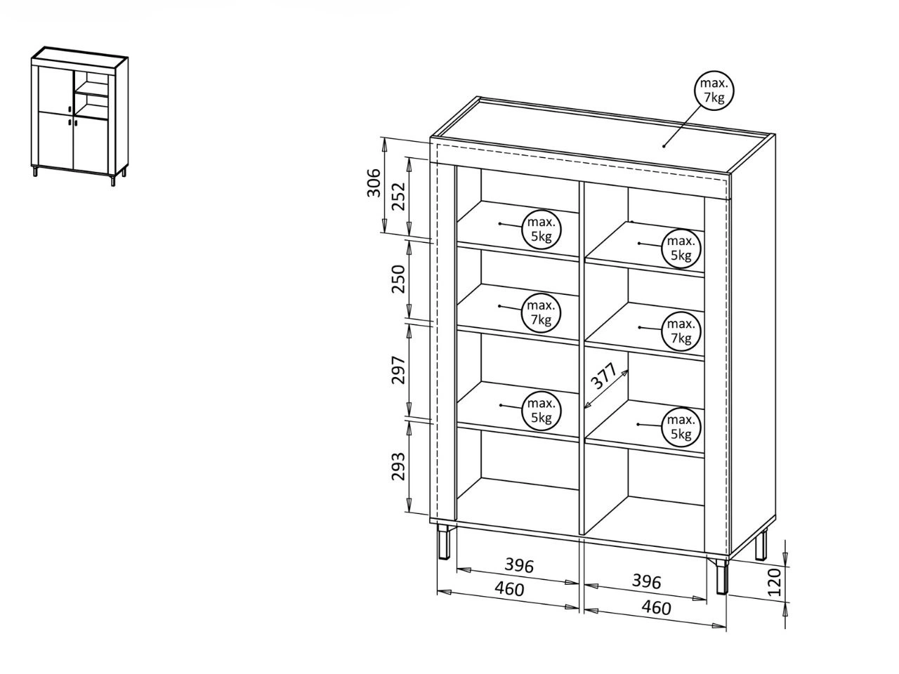 Die zweite Kommode Messina, im Hintergrund der Einrichtung platziert, bietet zusätzlichen Stauraum und dient zugleich als dezenter dekorativer Akzent. Geschlossene Bereiche ermöglichen eine komfortable Organisation von Dokumenten, Textilien oder Accessoires, während die offene Nische mit integrierter LED-Beleuchtung eine stilvolle Präsentation von Dekorationen erlaubt und dem Raum ein warmes, stimmungsvolles Licht verleiht.